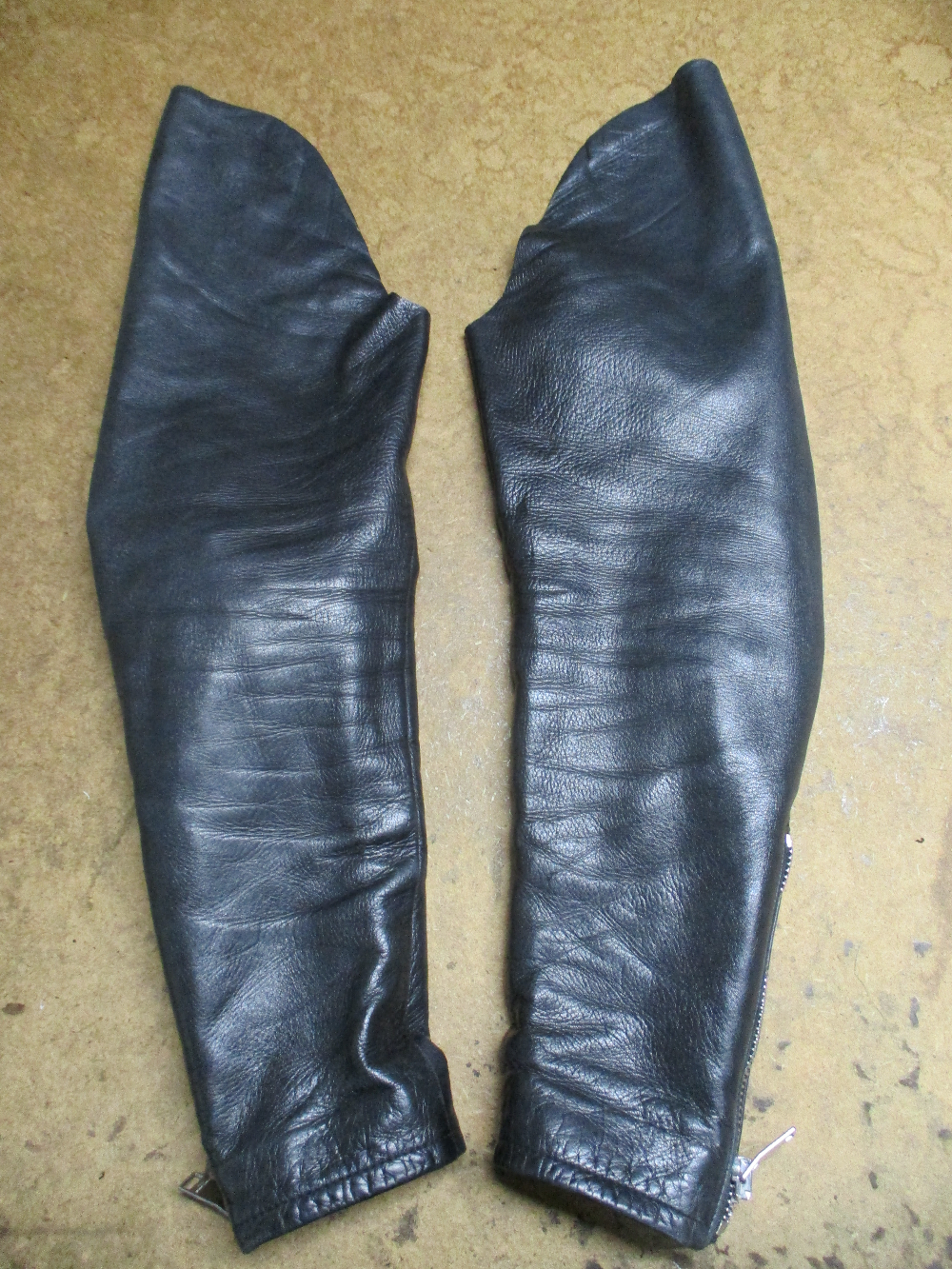 1枚目は東京都からの郵送のお客さんの長い袖丈を短くしていく前のライダースジャケットです。