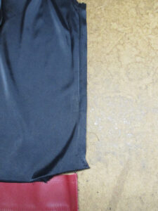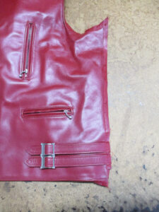 13枚目は前身ごろの脇から裾のサイドの生地とレザーをカットした写真です。