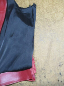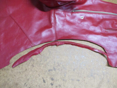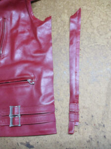 11枚目は後ろ身ごろの脇から裾のサイドのレザーをカットした写真です。