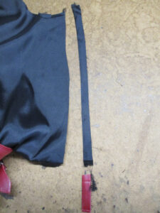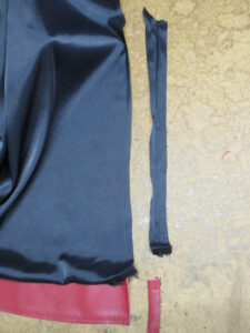 15枚目は後ろ身ごろの脇から裾のサイドの生地とレザーをカットした写真です。