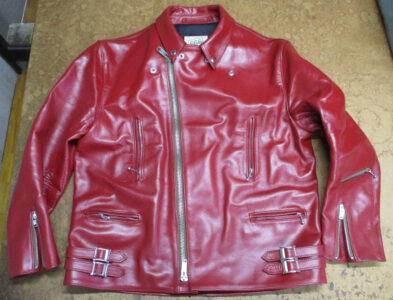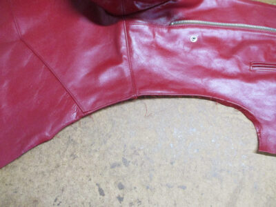 1枚目は神奈川県からの郵送のお客さんのサイズを小さく直していく前のライダースジャケットです。