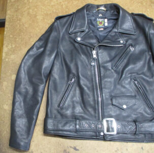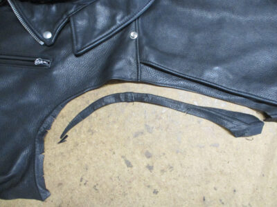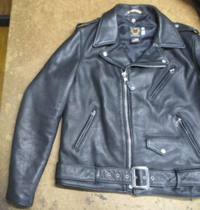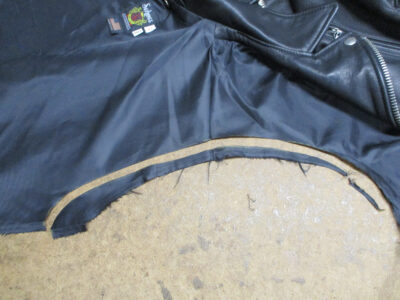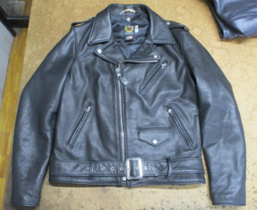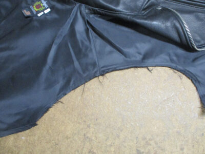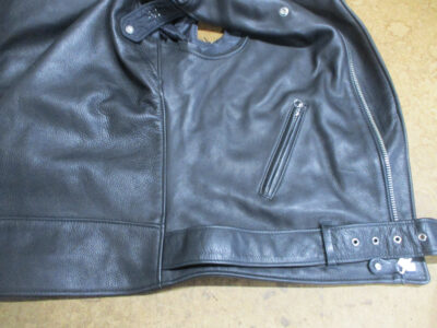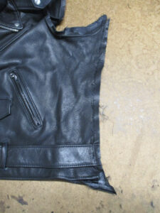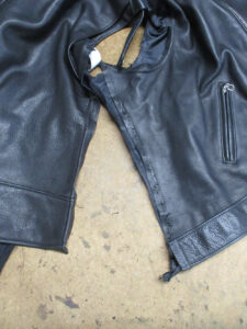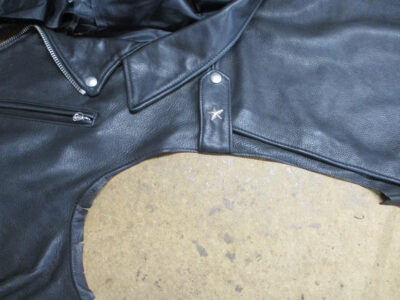 1枚目は秋田県からの郵送のお客さんのサイズダウンの作業を進めていくショットのライダースジャケットです。