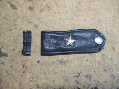 7枚目は表側のサイドのレザーをカットして身幅から裾幅を細く仕上げていきます。