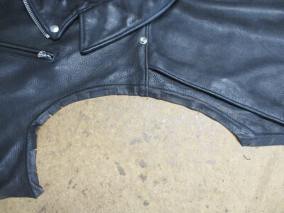 8枚目は脇から裾のサイドのレザーをカットした写真です。