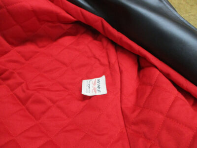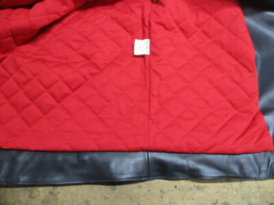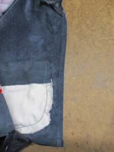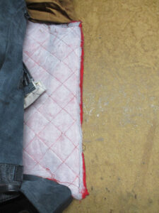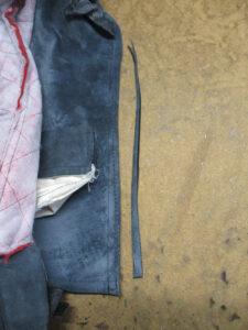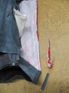 11枚目は裏地側の脇から裾のサイドの生地とレザーのパーツをカットした写真です。