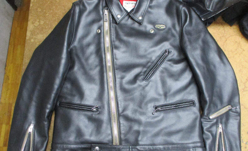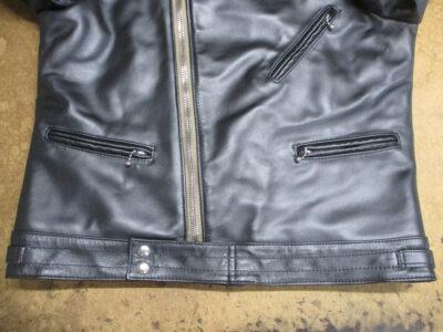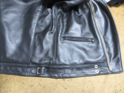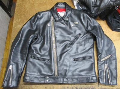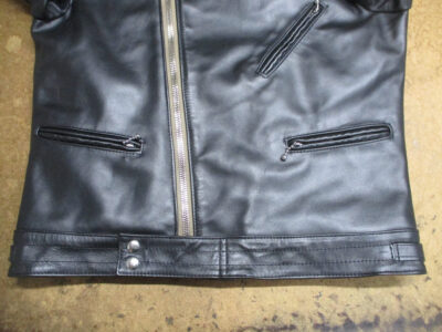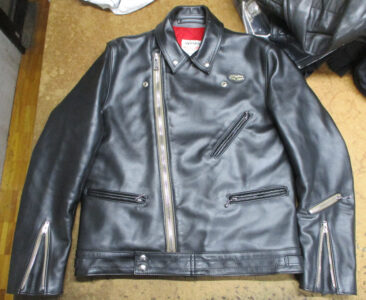 1枚目は来店されたお客さんの裾幅を細くしていく前のライダースジャケットの写真です。