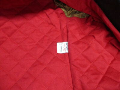 5枚目は裏地の脇下にブランドタグが付いていますので取り外して生地をカットした後に元の位置に取り付けていきます。