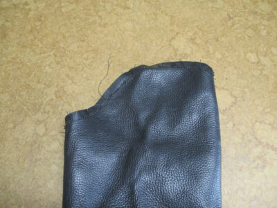 4枚目は袖山のレザーをカットして袖丈を短く仕上げていきます。