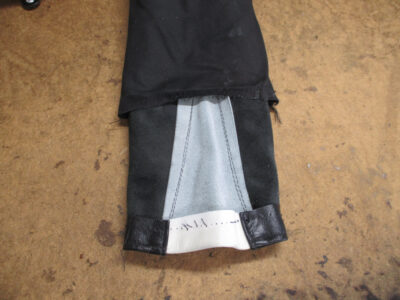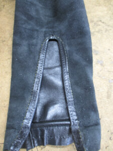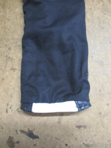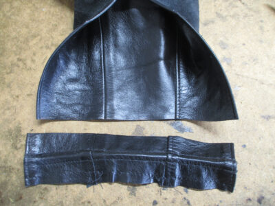 この後、表のレザー部分に取り付けるのに広がった袖先の幅を元の幅に戻して組み直して完成です。