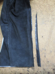7枚目はファスナーのパーツを取り付けられるようにレザーをカットした写真です。