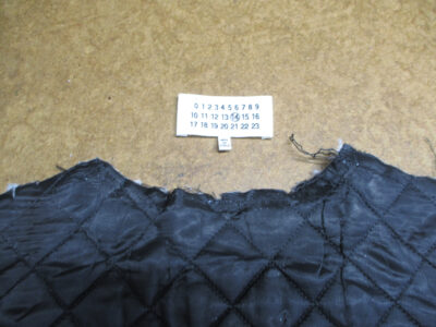 3枚目は襟下のブランドタグも取り外して新しい裏地の同じ位置に取り付けていきます。