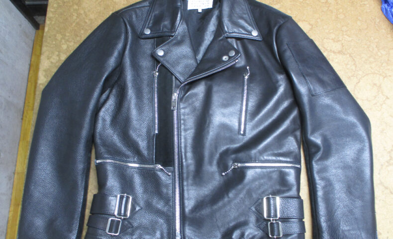 マルジェラのライダースジャケットの裏地交換と袖丈を短く直していきます。