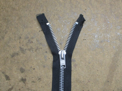 レザージャケットの壊れたファスナーを新しいものに交換していきます。…