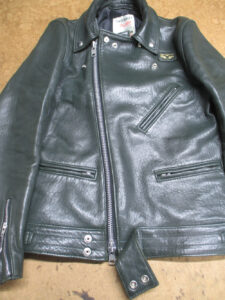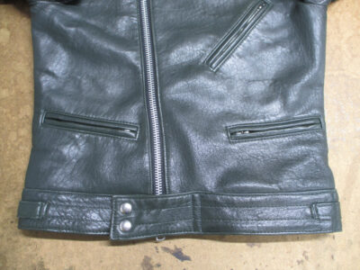 1枚目は埼玉県からの郵送のお客さんの着丈を短くしていく前のライダースジャケットです。