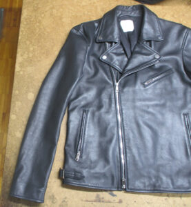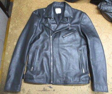 1枚目は来店されたお客さんのサイズを小さくしていく前のライダースジャケットです。