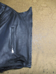 17枚目は袖山のレザーをカットして袖丈を短く仕上げていきます。