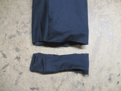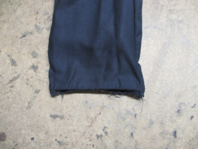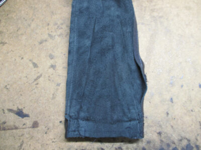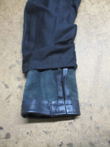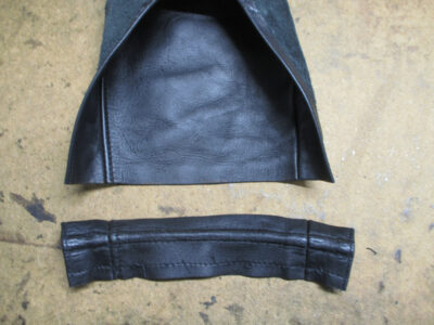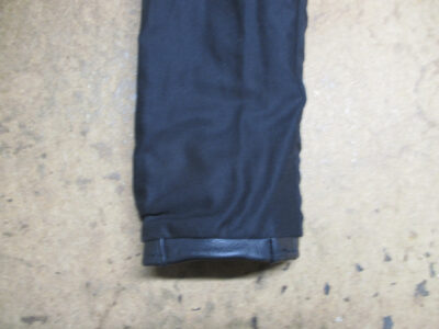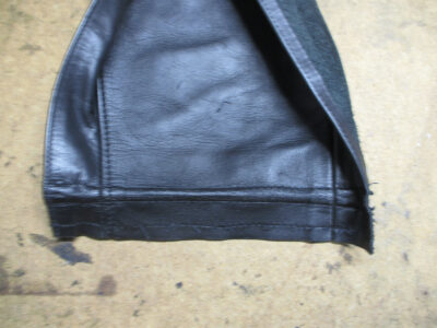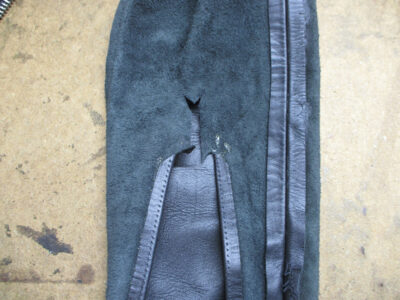 この後、広がった袖先の幅を元の幅に戻して表のレザー部分と組み直して完成です。