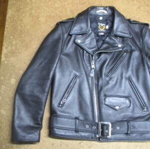 1枚目は鹿児島県からの郵送のお客さんの袖丈を短く仕上げていく前のライダースジャケットです。