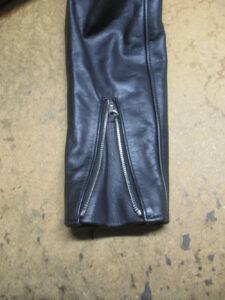 長い袖丈のレザージャケットをお客さんの好みの長さに短くリサイズ 革ジャン袖丈縮め修理