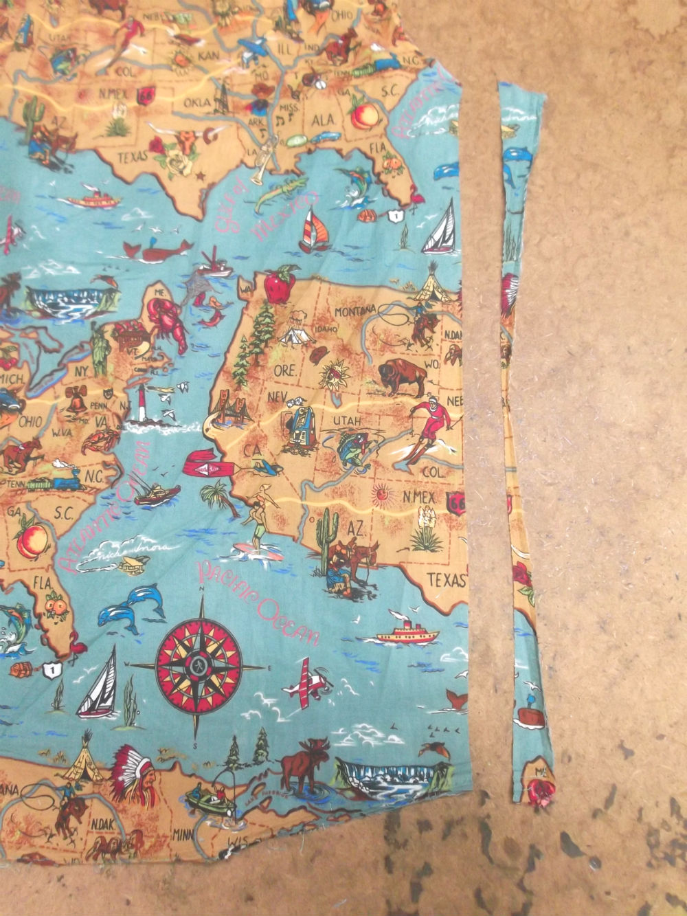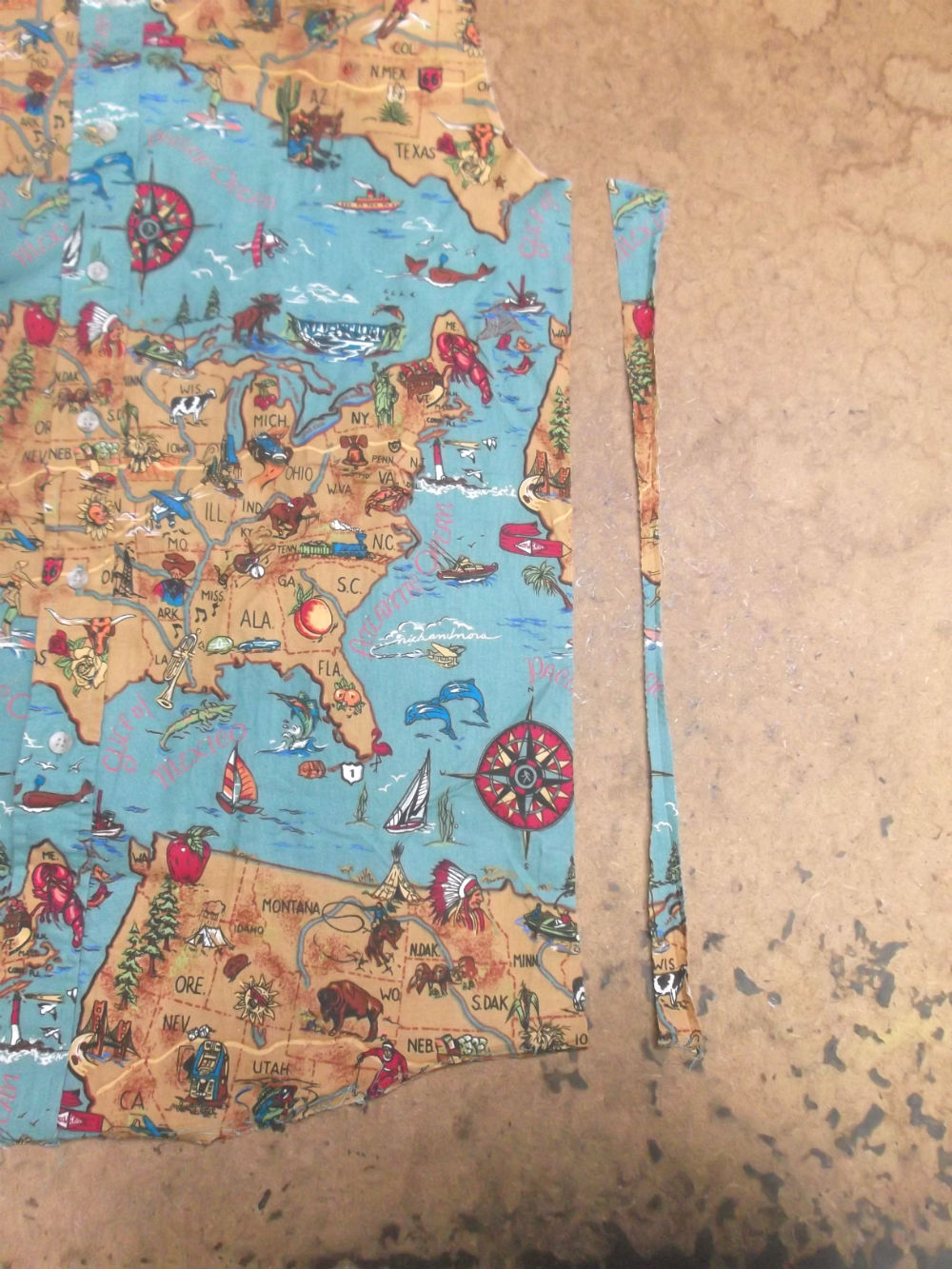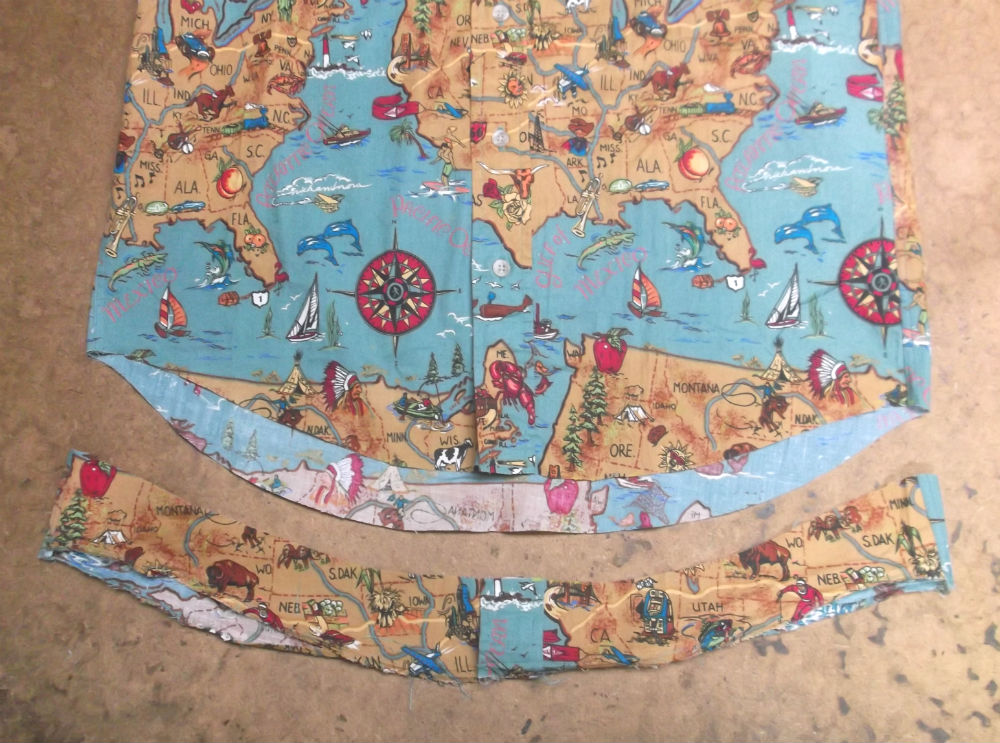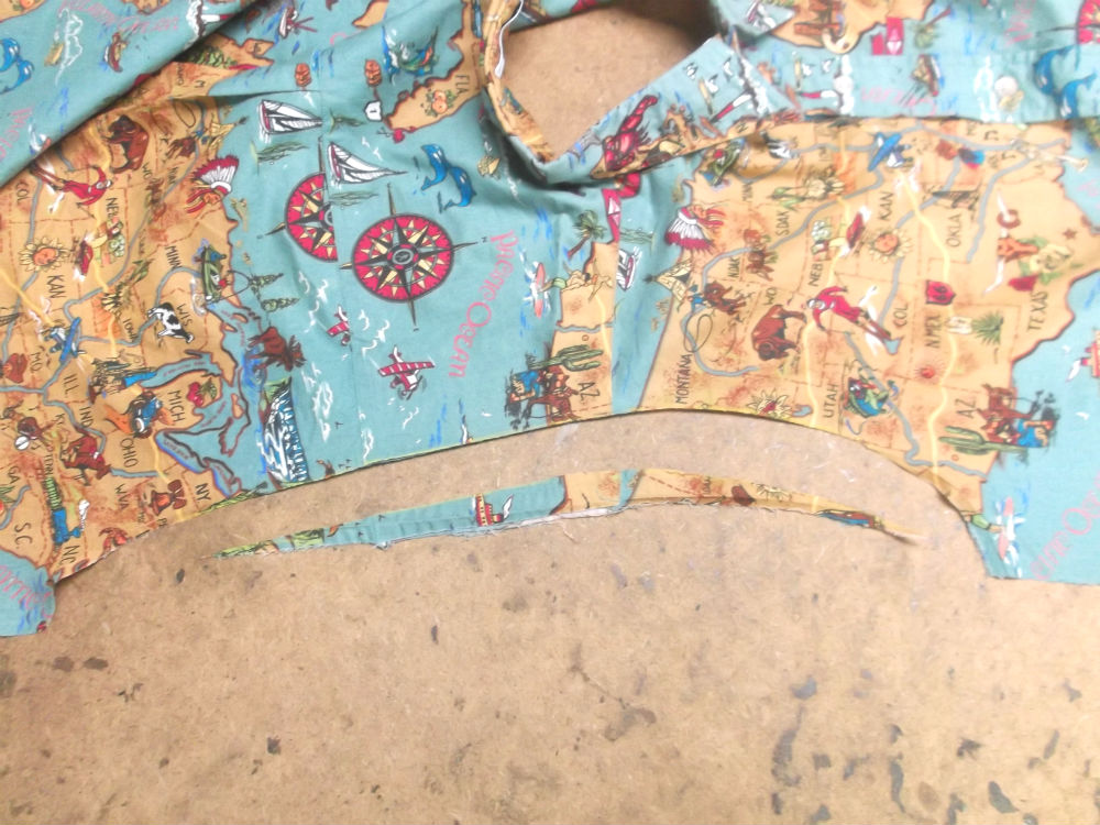 7枚目は後ろ見ごろの脇から裾のサイドの生地をカットした後の写真です。
