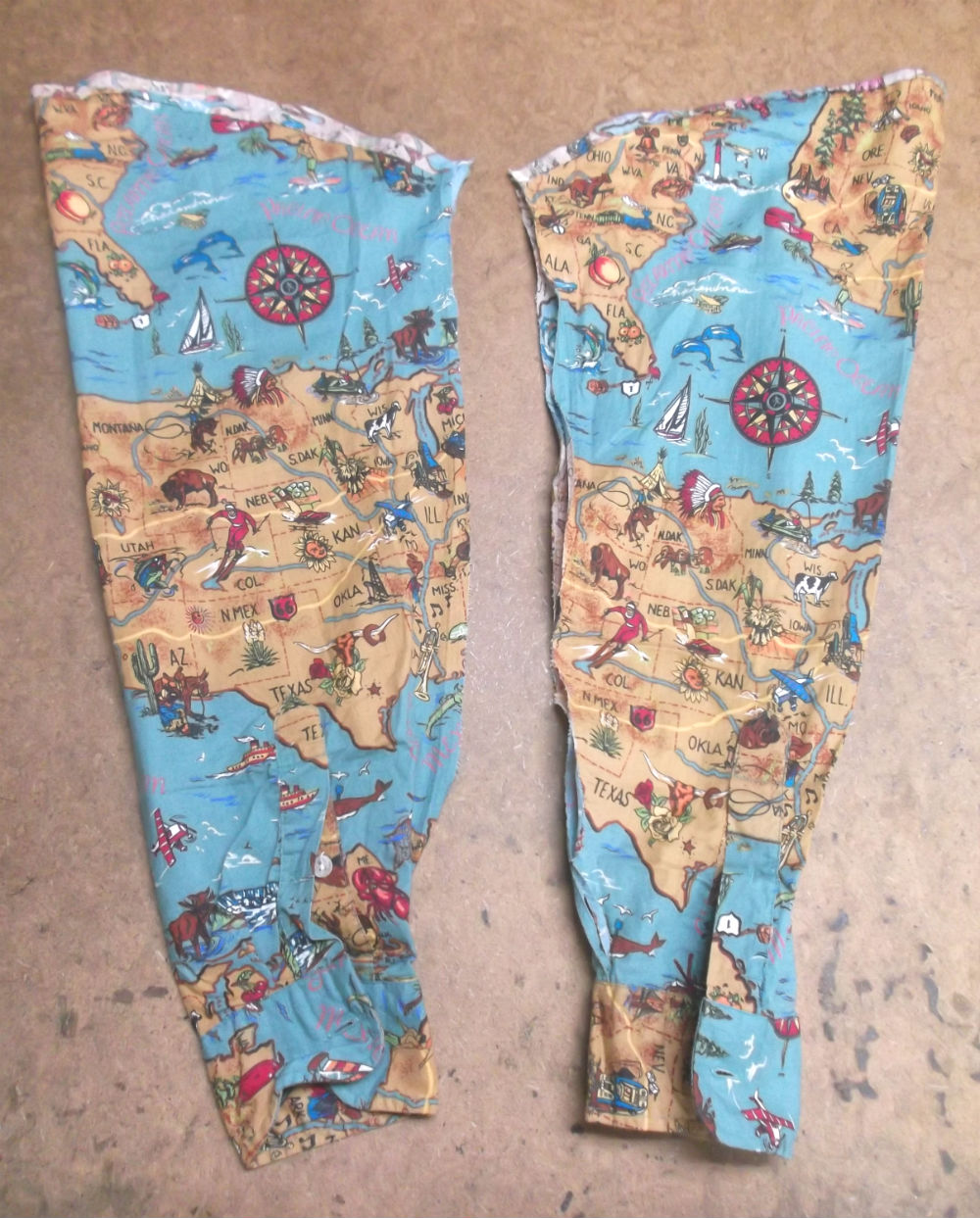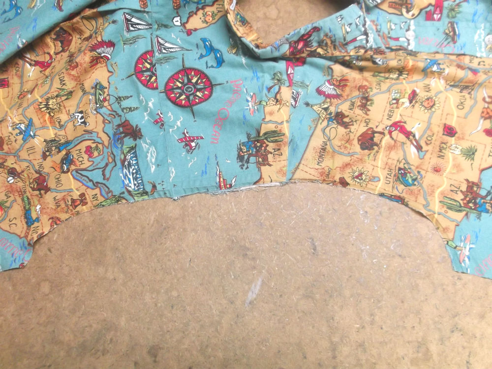 12枚目は脇から袖先にかけて見本の幅に合う様に生地をカットした後の写真です。