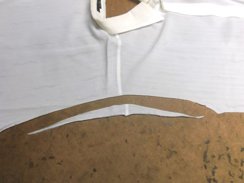 5枚目は胴体の脇から裾のサイドの生地をカットした後の写真です。
