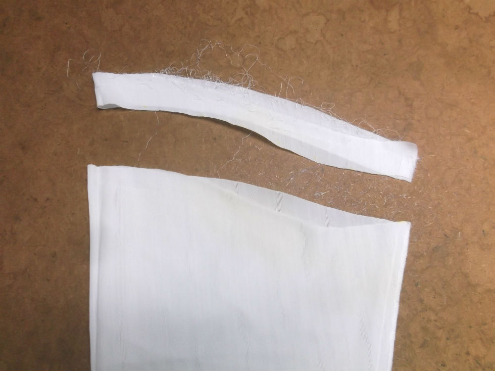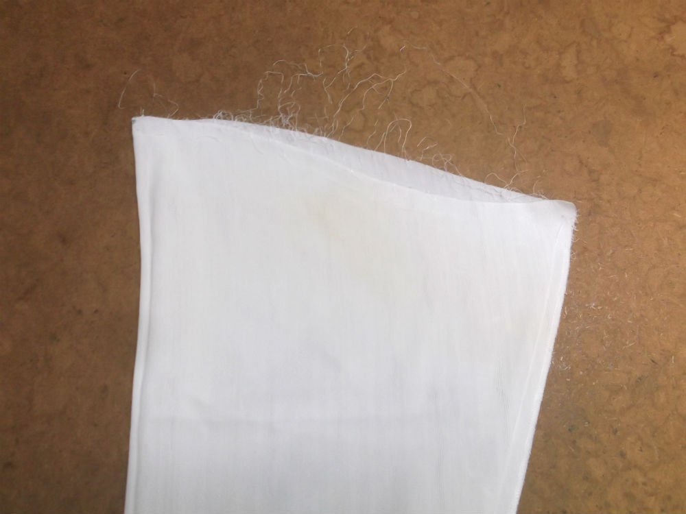 15枚目は見本のラインに合わせて裾の生地をカットした後の写真です。