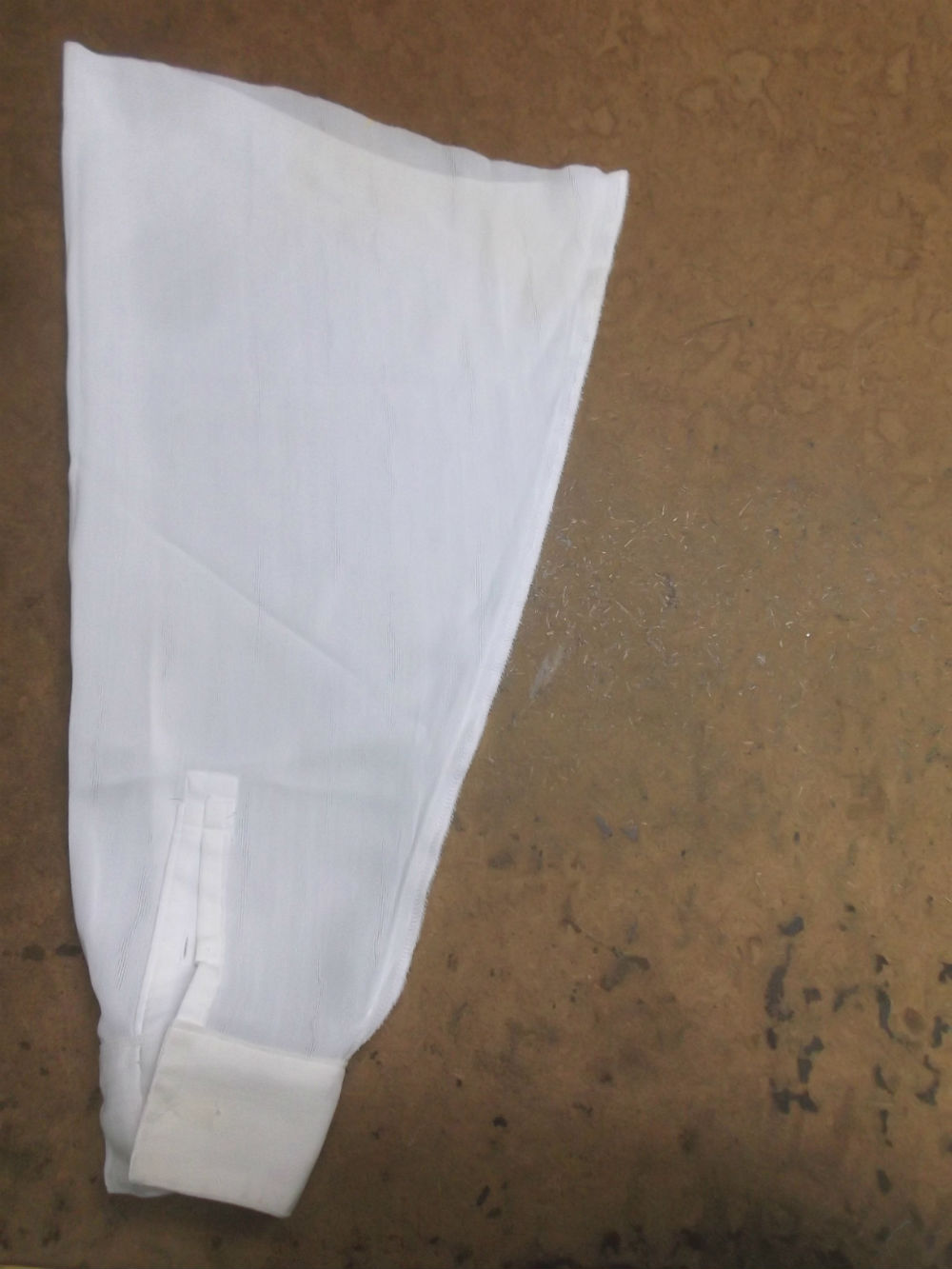 13枚目は袖のパーツの脇から袖先にかけて生地をカットした後の写真です。