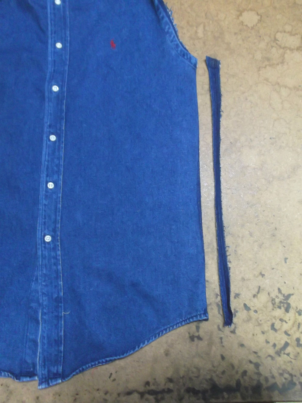 5枚目は前身ごろの脇から裾のサイドの生地をカットした後の写真です。