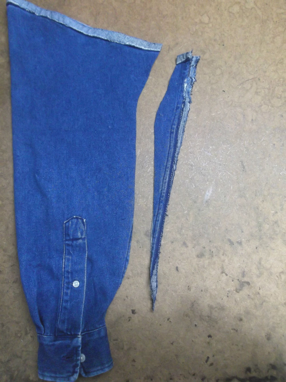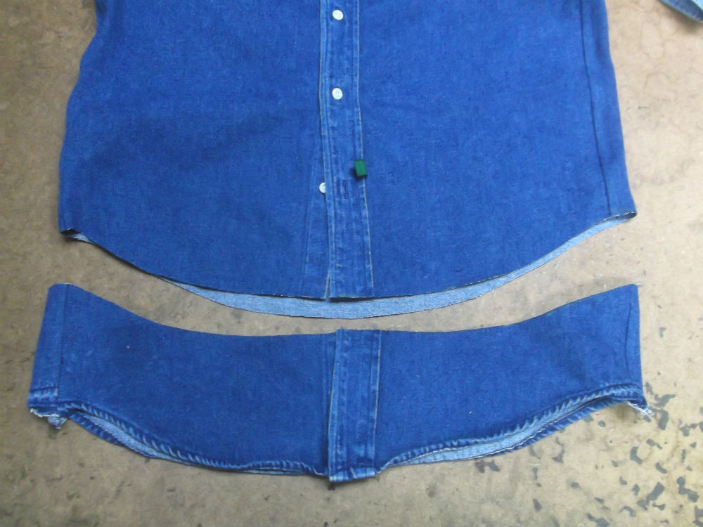 13枚目は脇から袖先にかけて生地をカットした後の写真です。