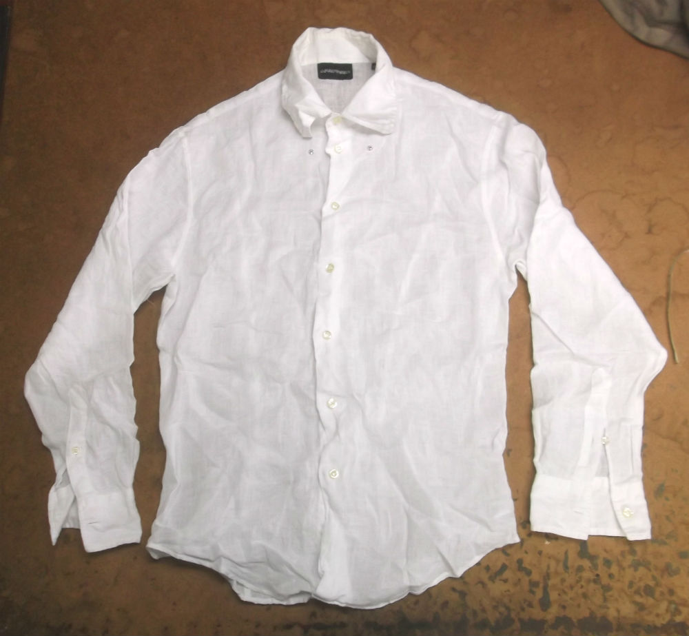 大きいサイズのアルマーニのシャツをお客さんの気に入ったサイズのシャツを見本に小さくリサイズしていきます。