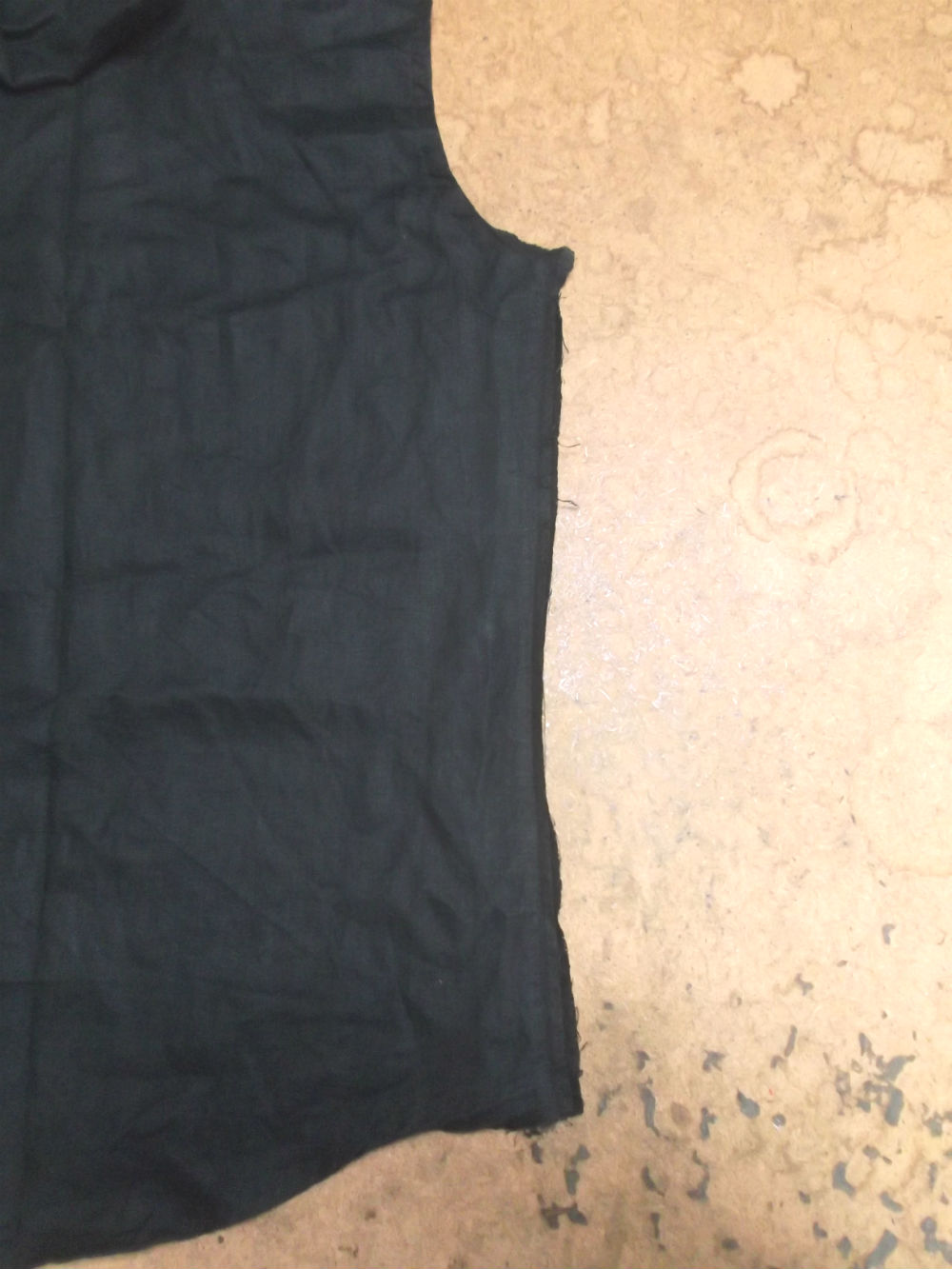 5枚目は前身ごろの脇から裾のサイドの生地をカットした後の写真です。
