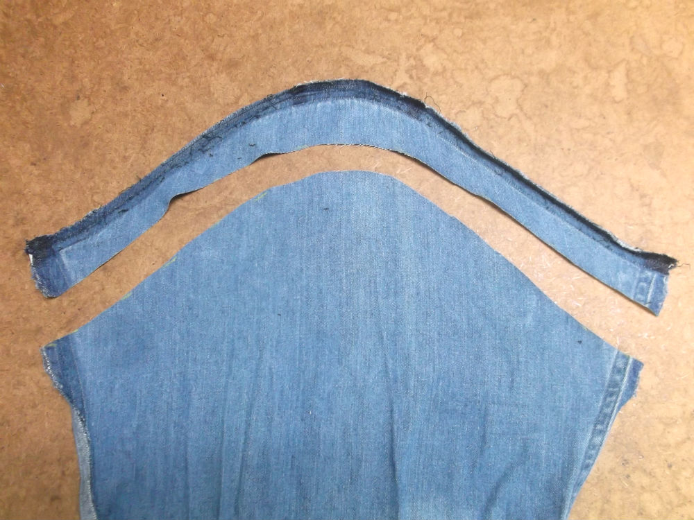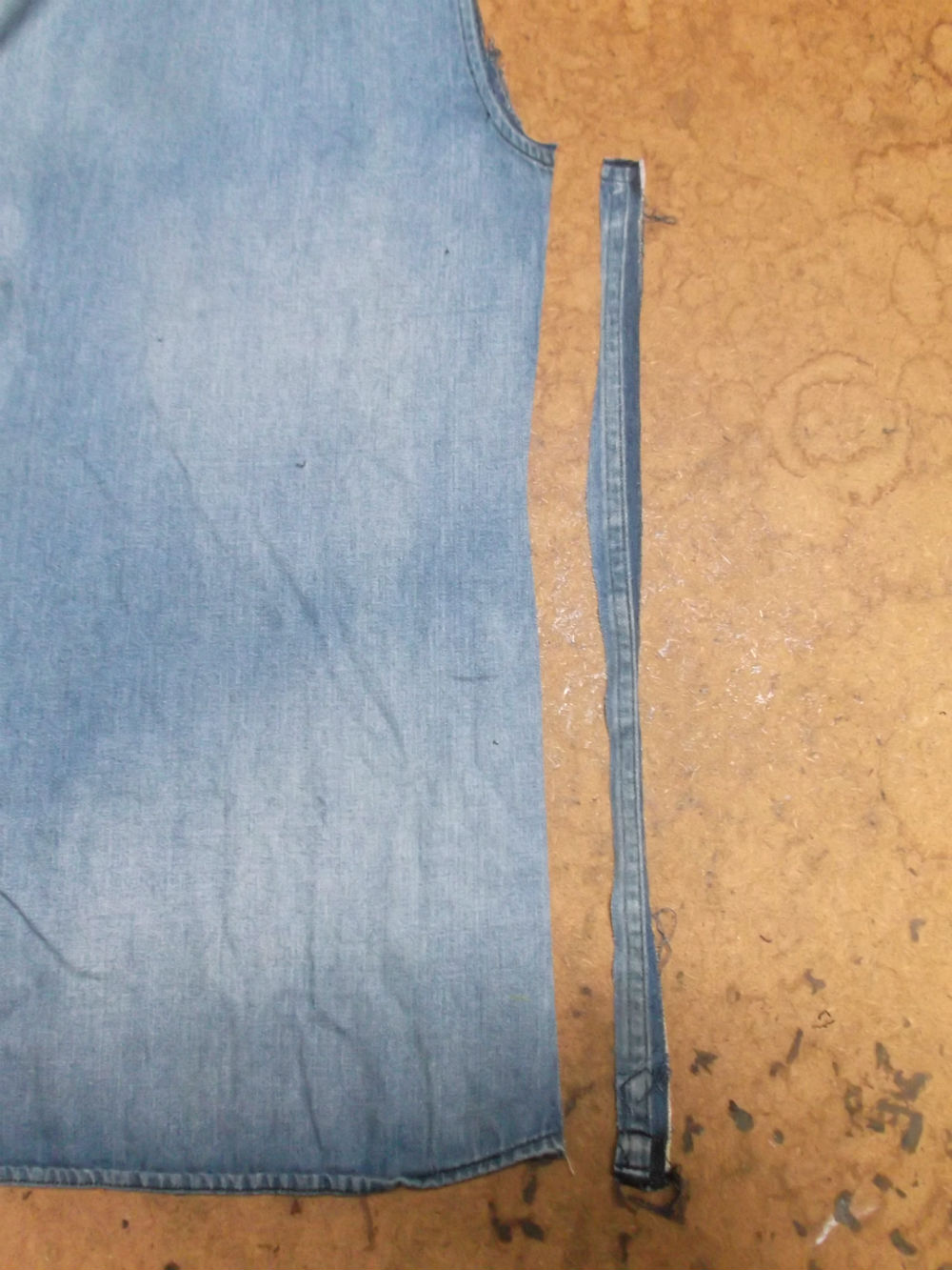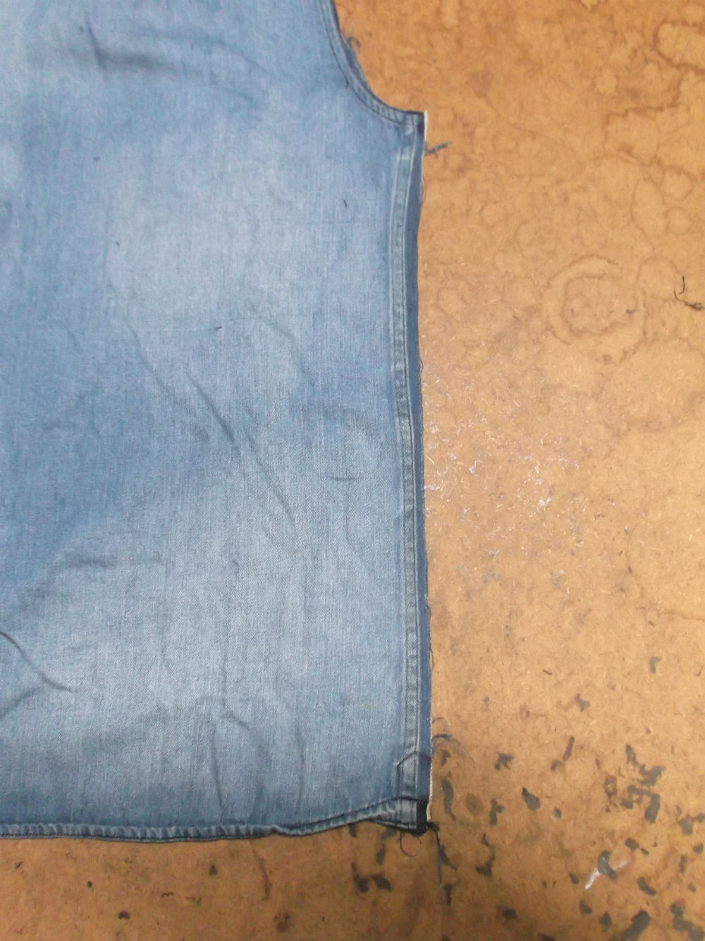 6枚目は後ろ見ごろの脇から裾のサイドの生地をカットした後の写真です。