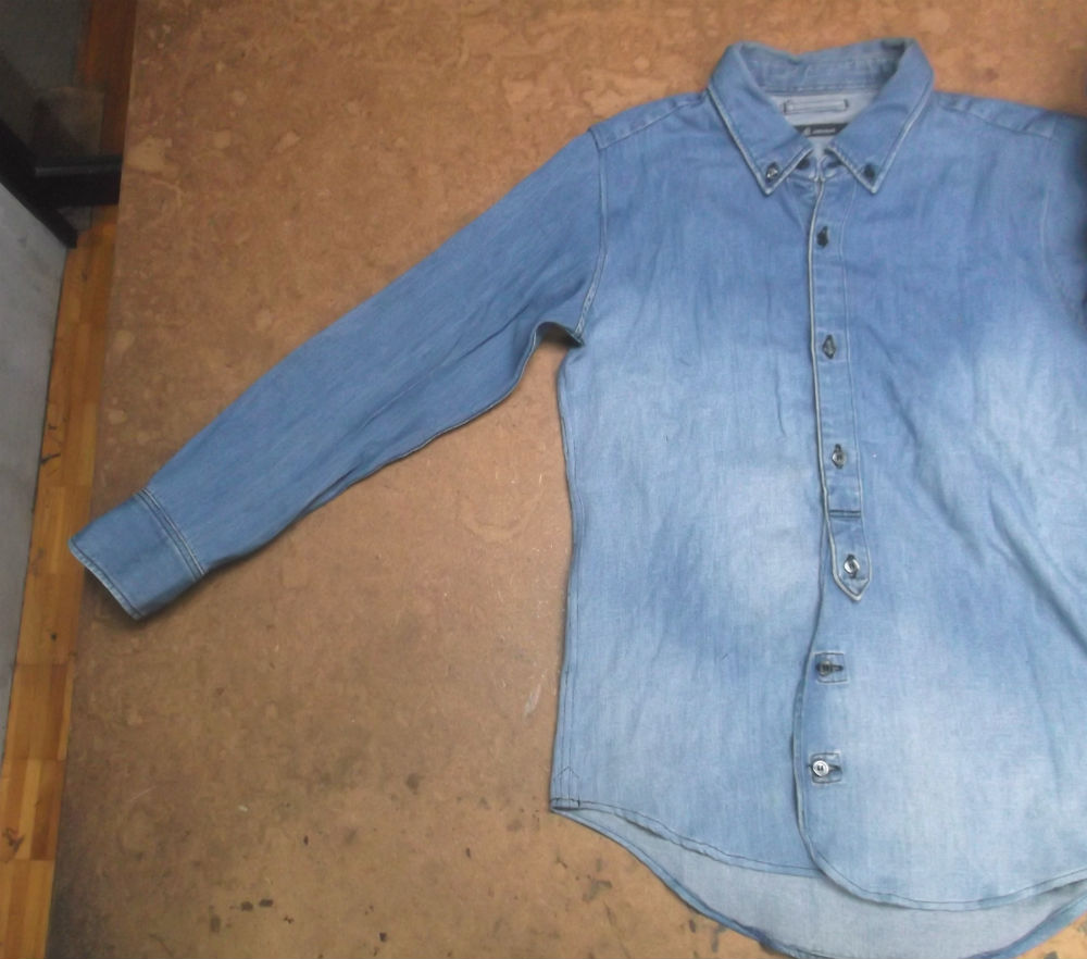 大きいサイズのシャツをお客さんの気に入ったサイズに小さくリサイズしていきます。