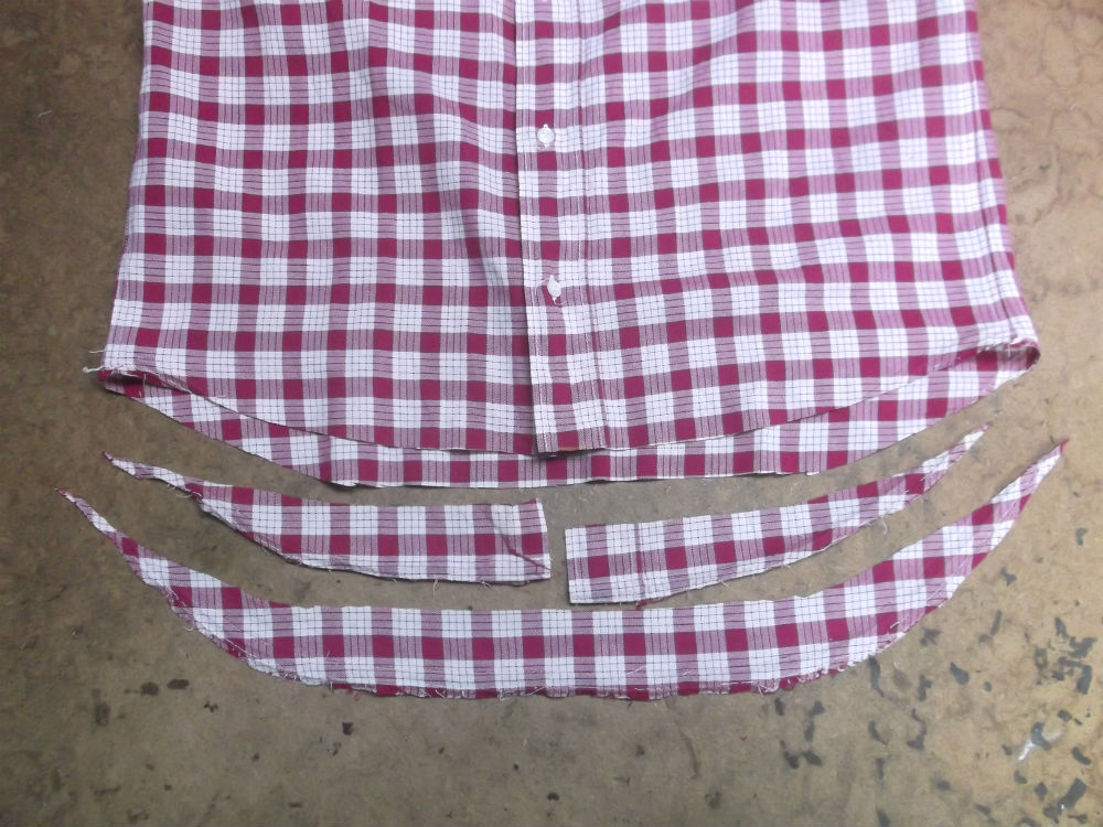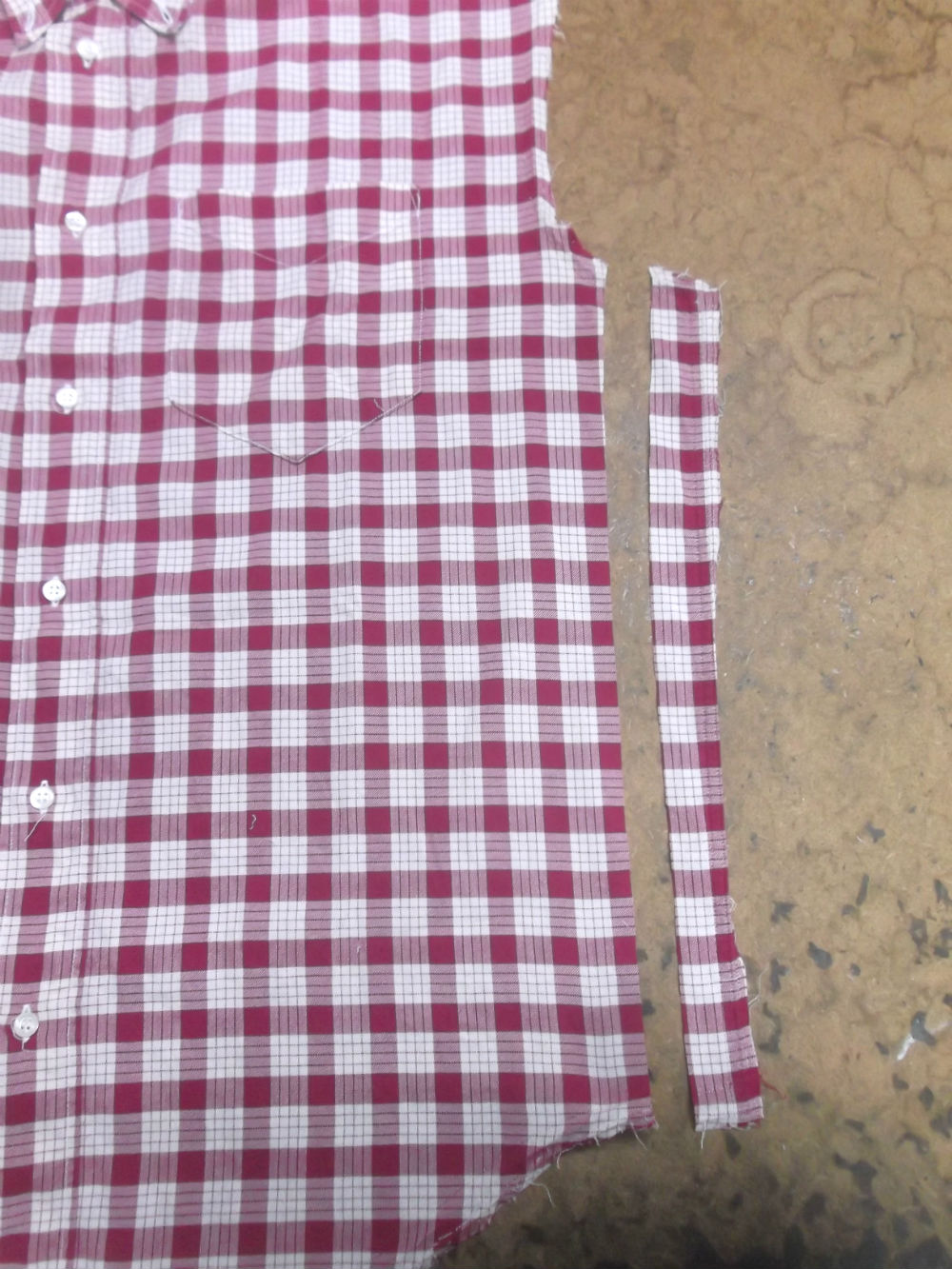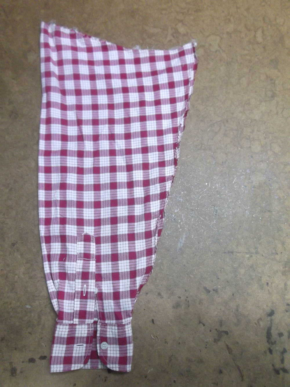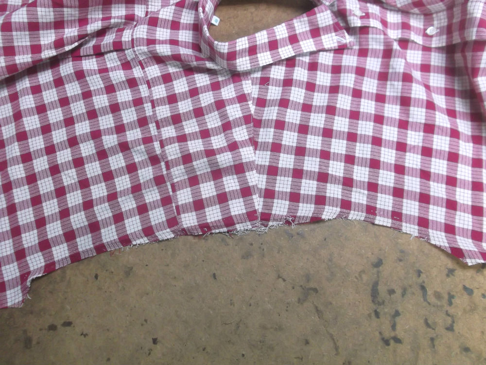 10枚目は着丈以外のシャツの胴体の肩幅、身幅、裾幅の生地をカットした後の写真です。
