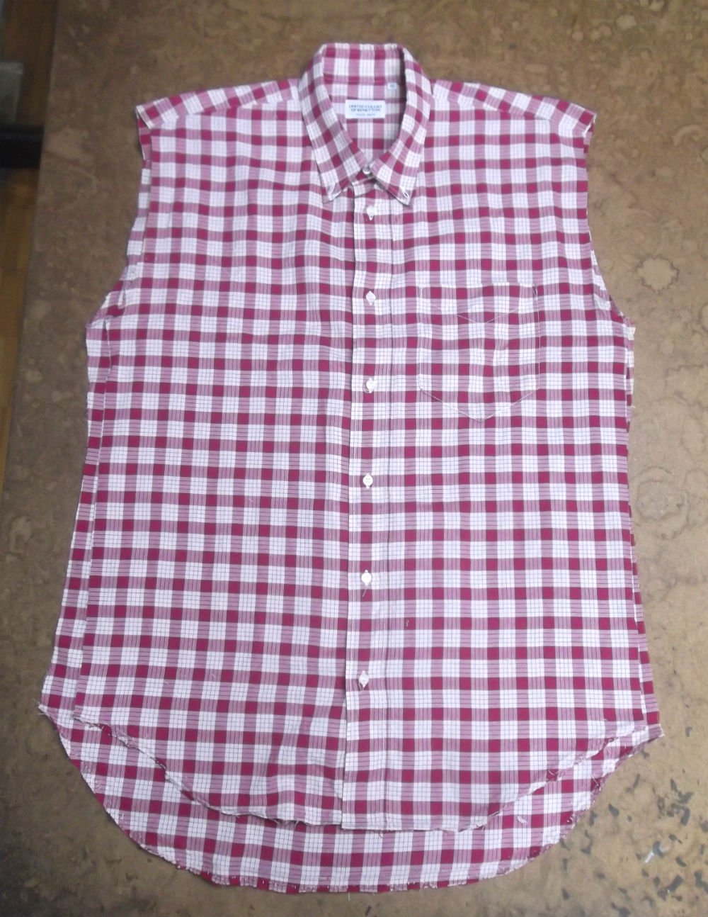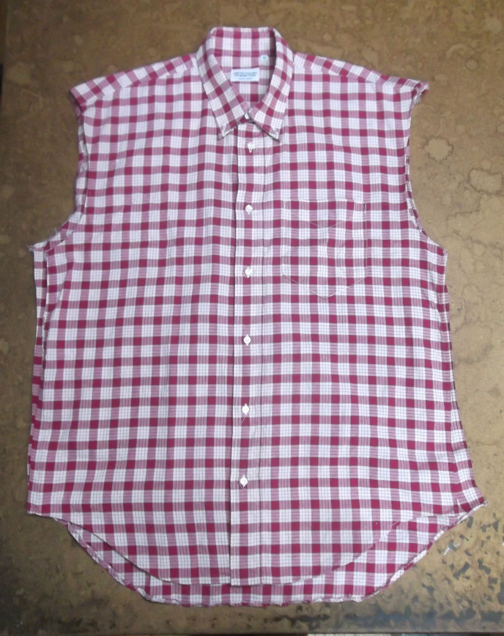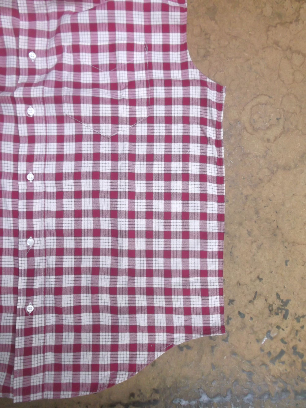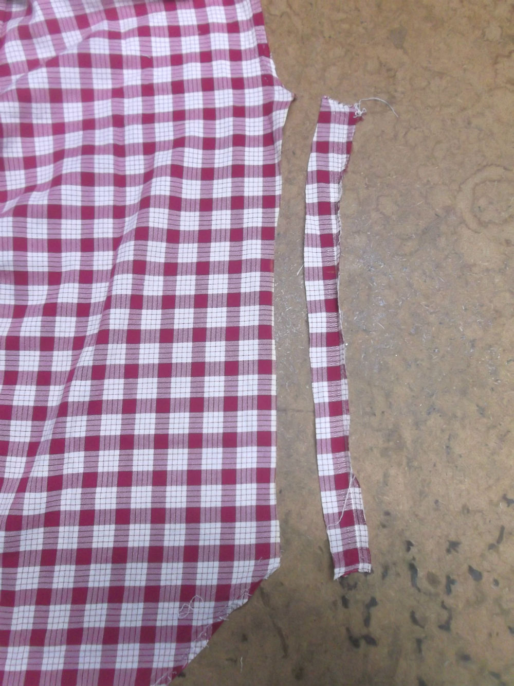 10枚目は着丈以外のシャツの胴体の肩幅、身幅、裾幅の生地をカットした後の写真です。