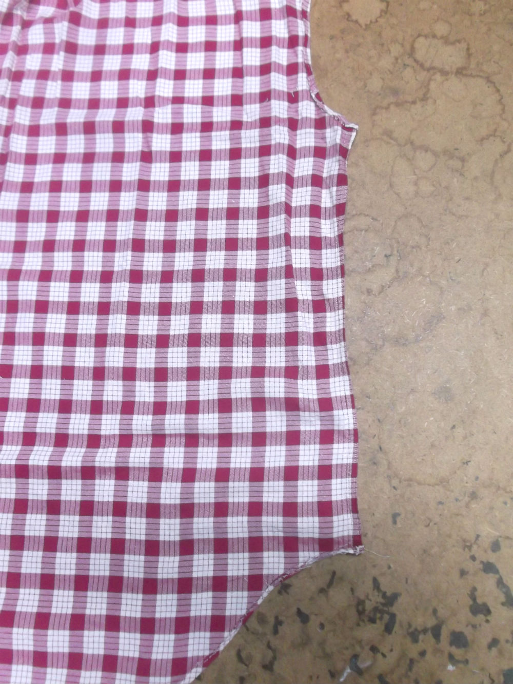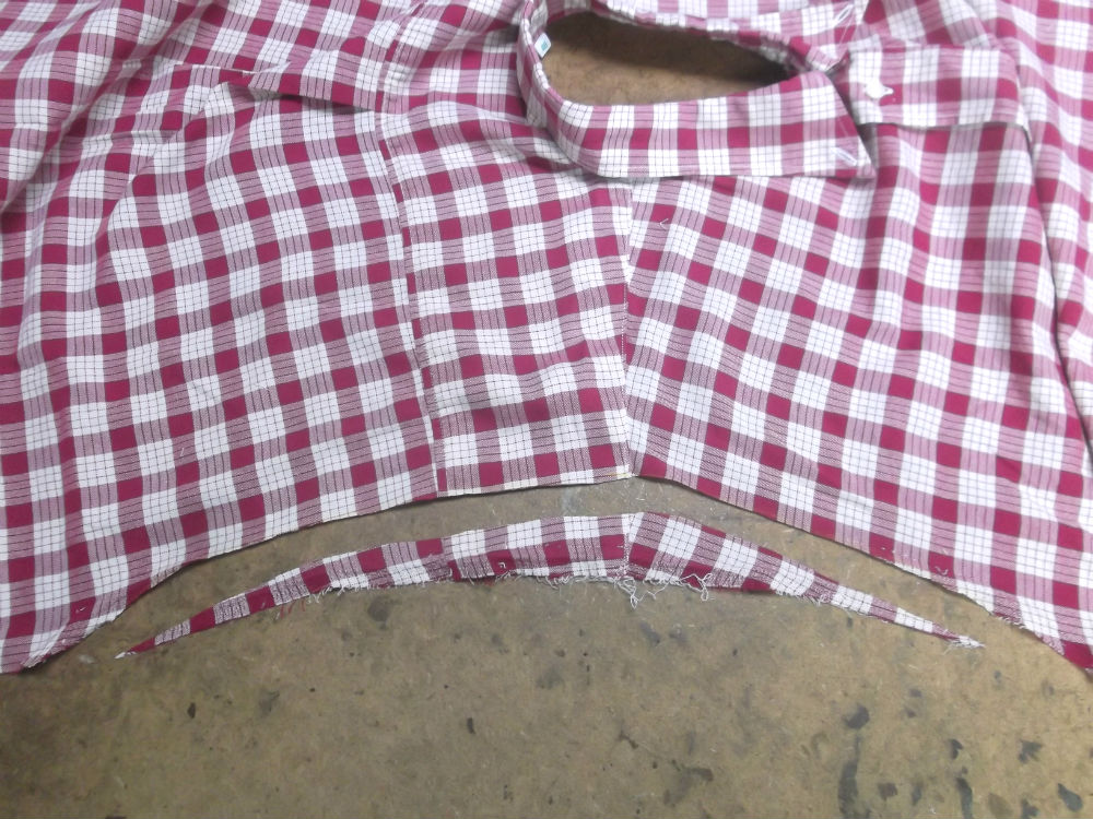 7枚目は後ろ身ごろの脇から裾のサイドの生地をカットした後の写真です。