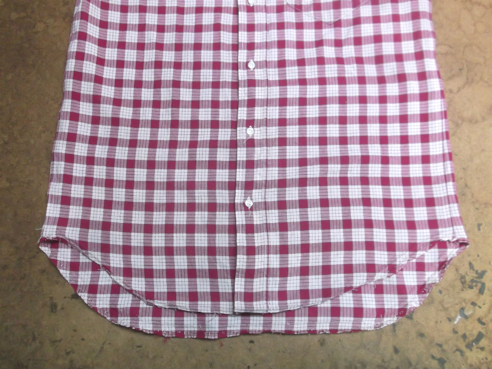 14枚目は長い着丈を見本のシャツの長さに合う様に裾の生地をカットしていきます。