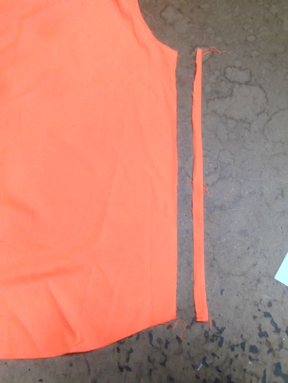 6枚目は後ろ見ごろの脇から裾のサイドの生地をカットした後の写真です。