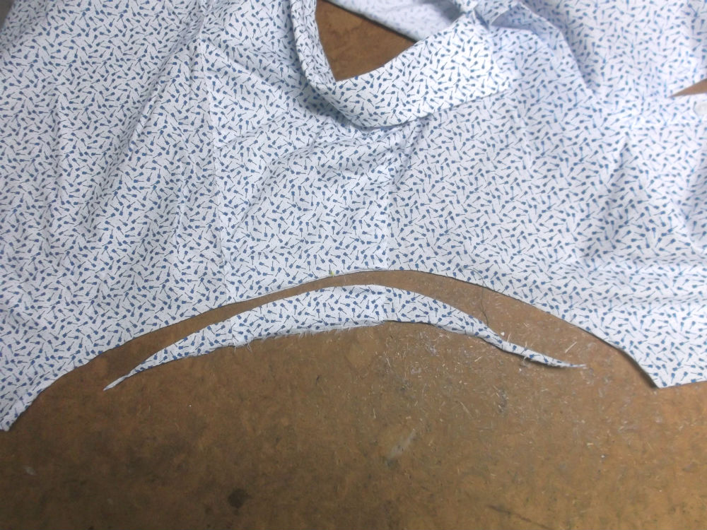 13枚目は脇から袖先にかけて生地をカットしていきます。