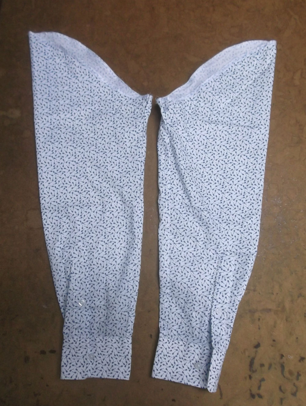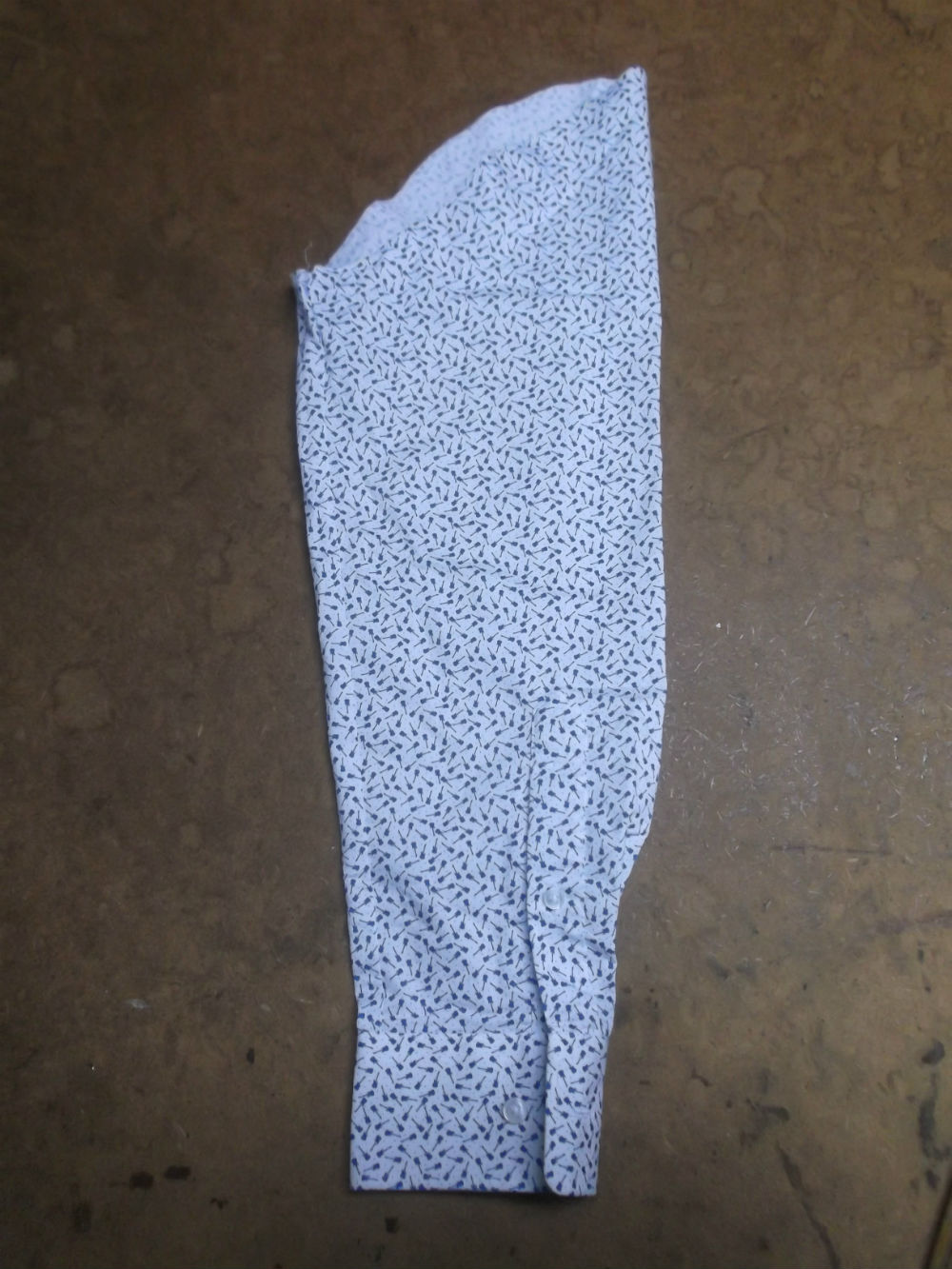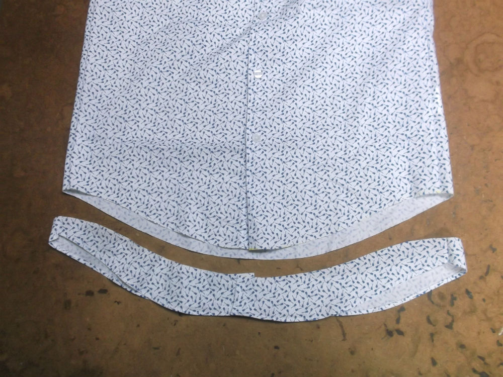 長い袖丈のシャツをお客さんの好みの長さに短くリサイズしていきます。…