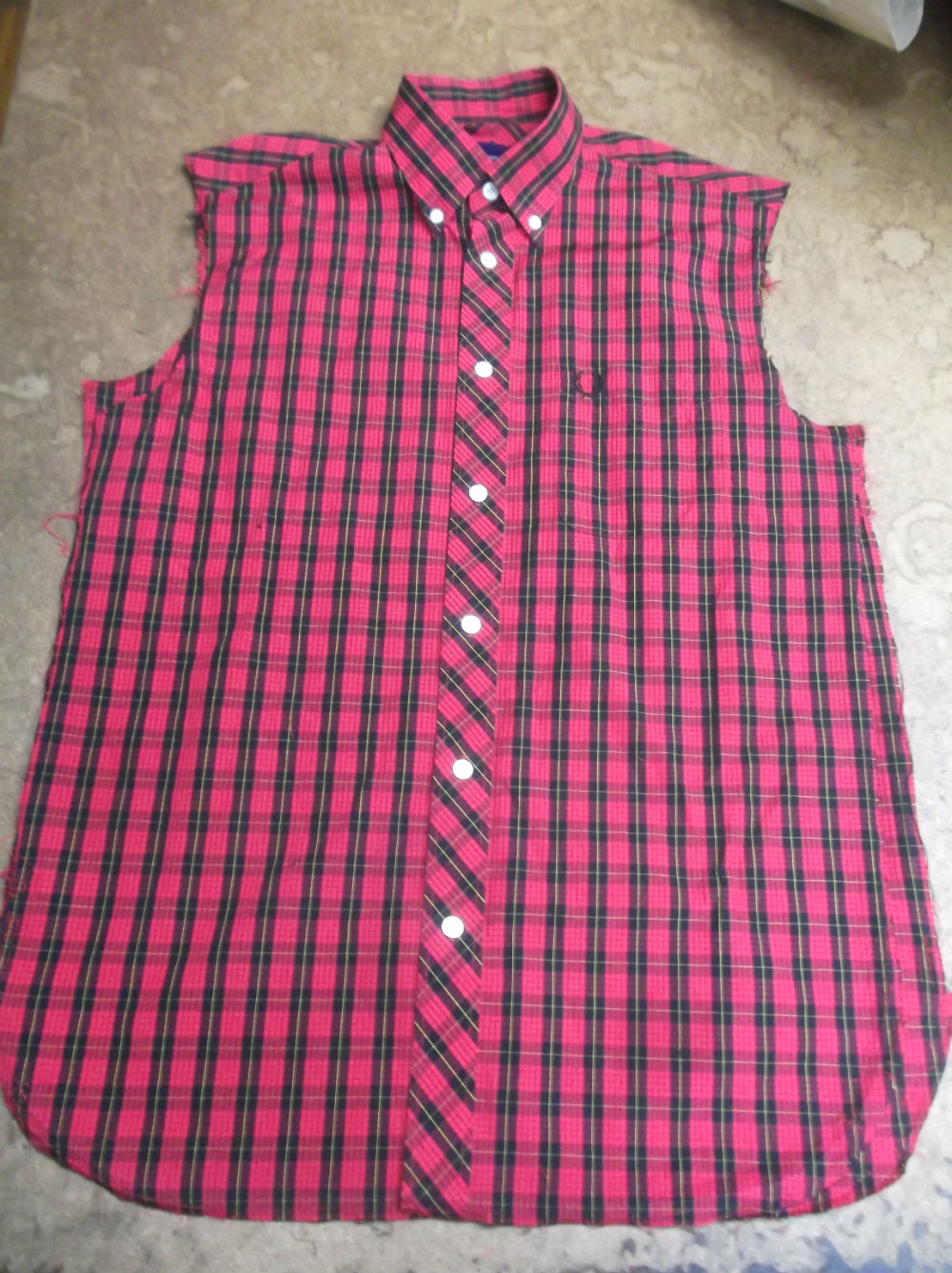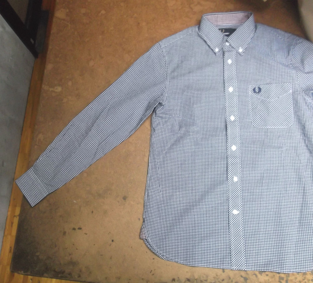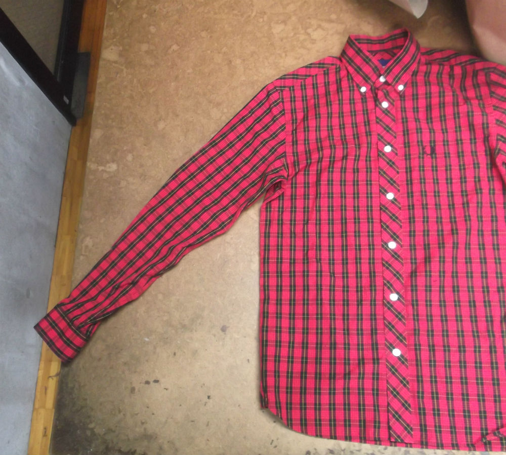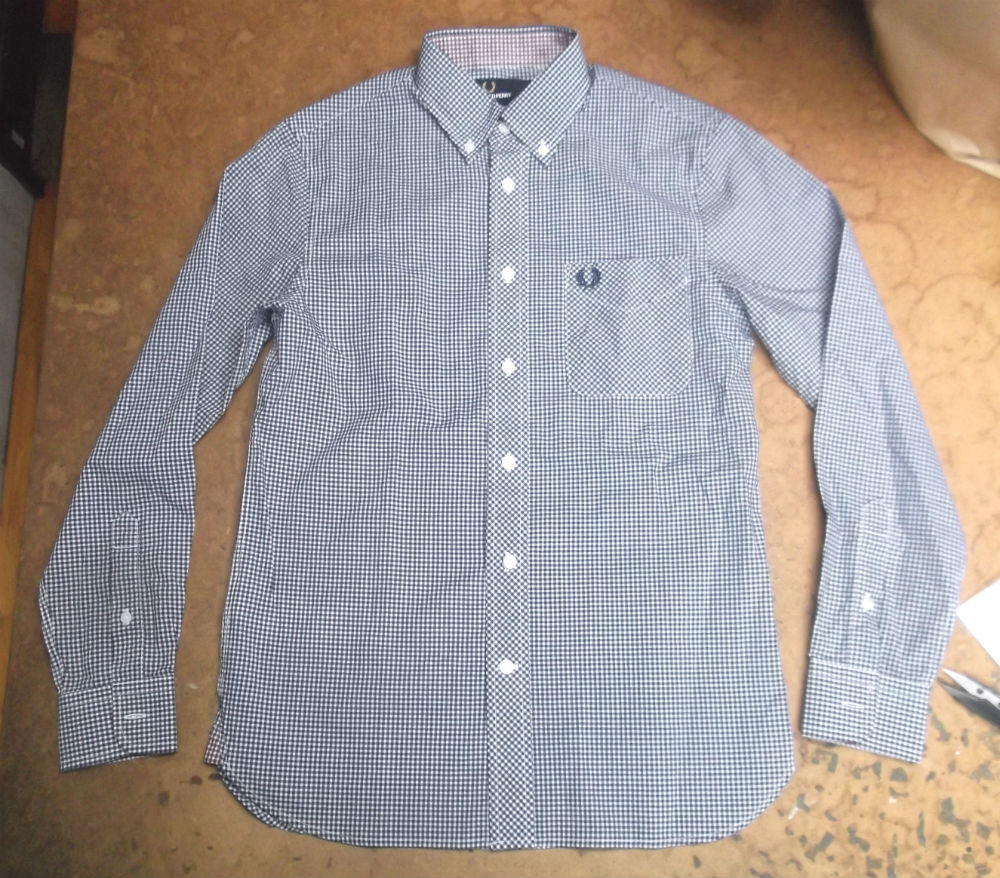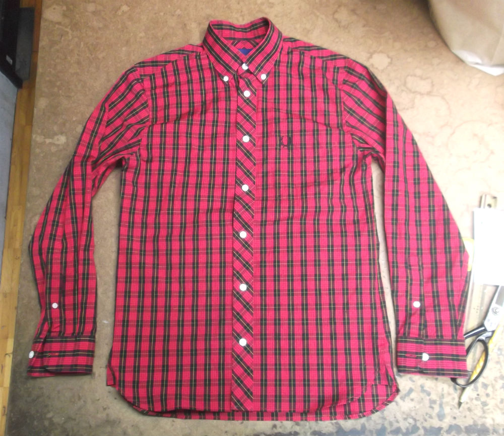 フレッドペリーの大きいサイズのシャツをお客さんの好みのサイズに小さくリサイズしていきます。