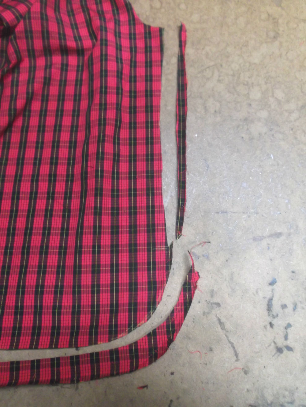 5枚目は前身ごろの脇から裾の着丈の生地までをカットした後の写真です。