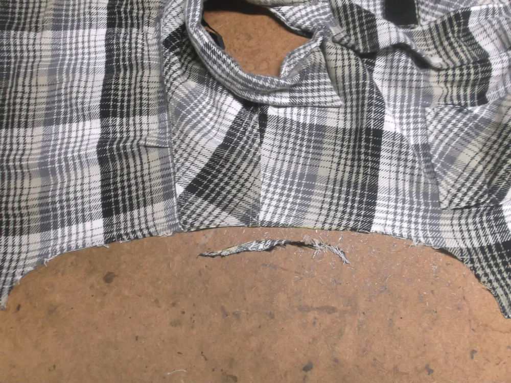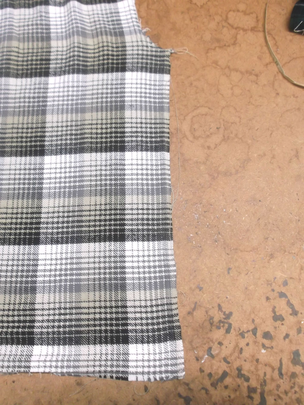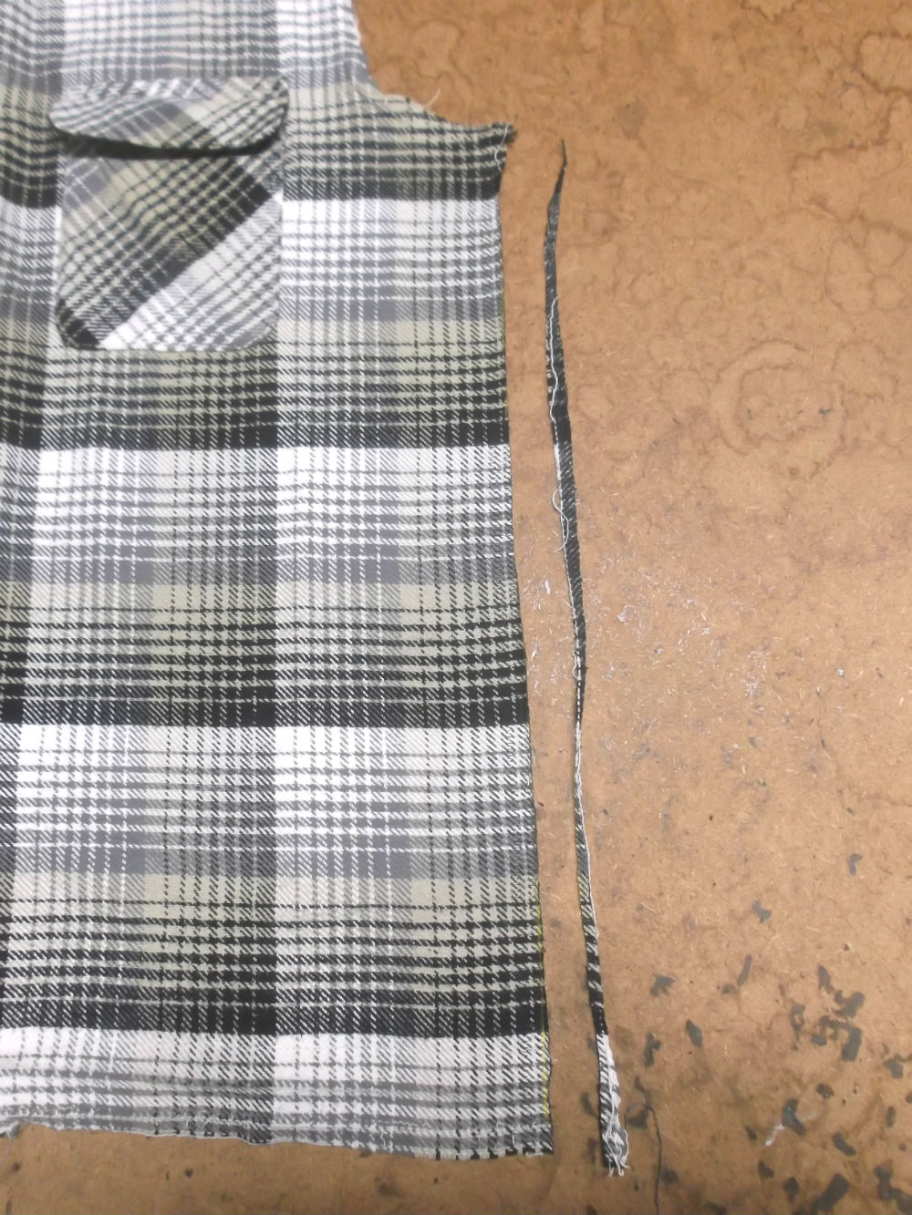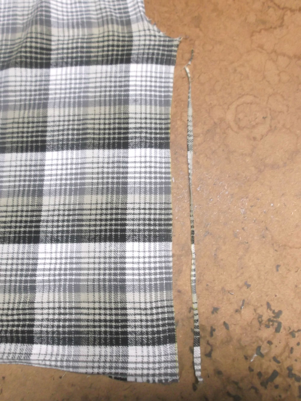 6枚目は前身ごろの脇から裾のサイドの生地をカットした後の写真です。