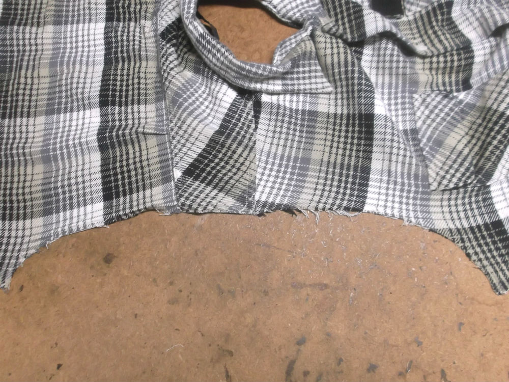 8枚目は後ろ見ごろの脇から裾のサイドの生地をカットした後の写真です。
