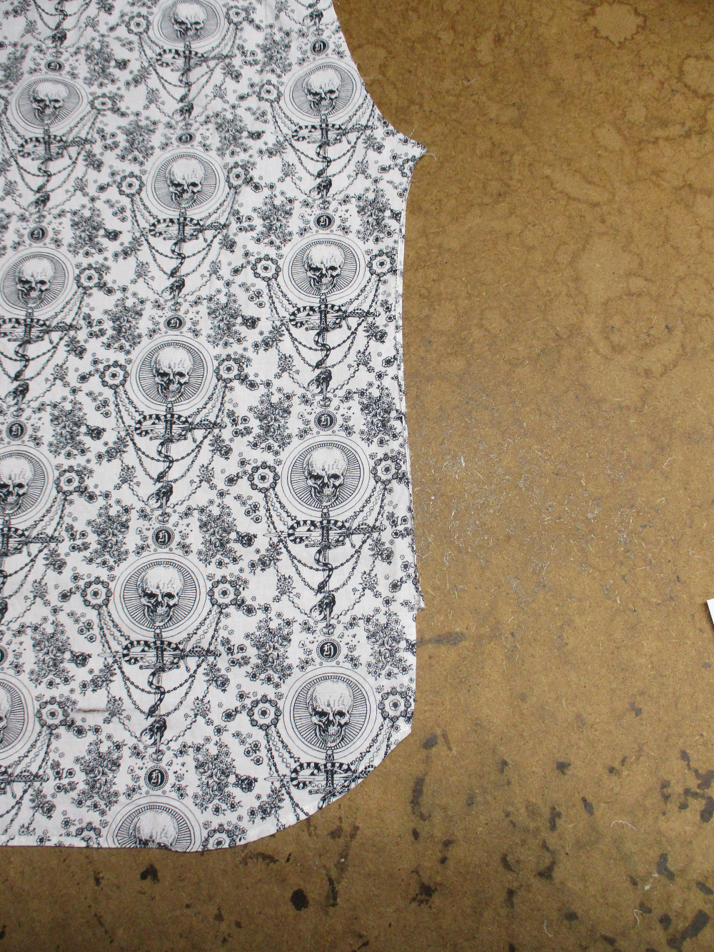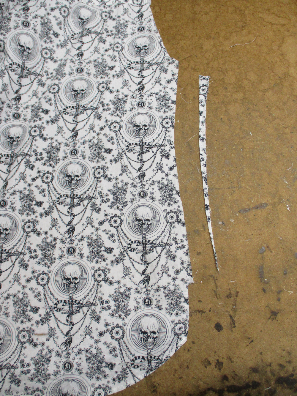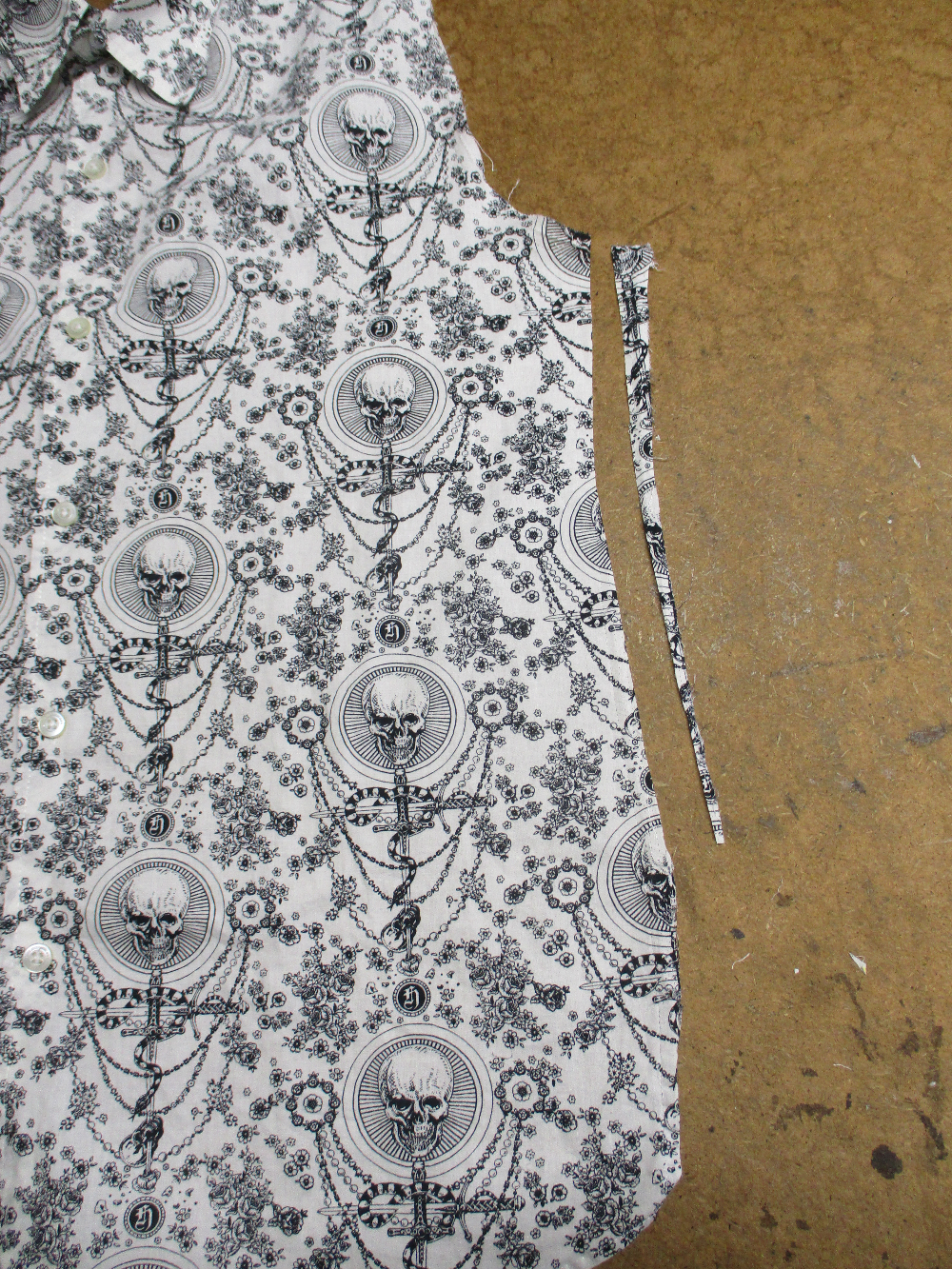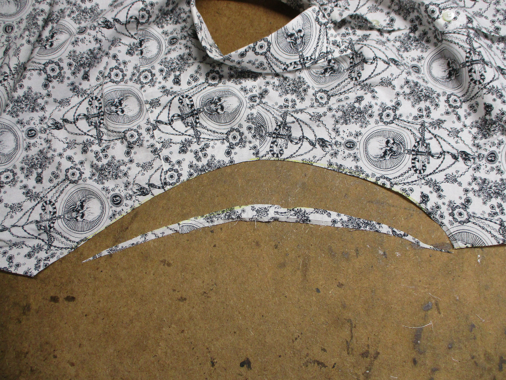 5枚目は前身ごろの脇から裾のサイドの生地をカットした写真です。
