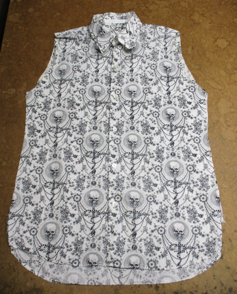 1枚目は来店されたお客さんのサイズを小さくしていく前のシャツの写真です。