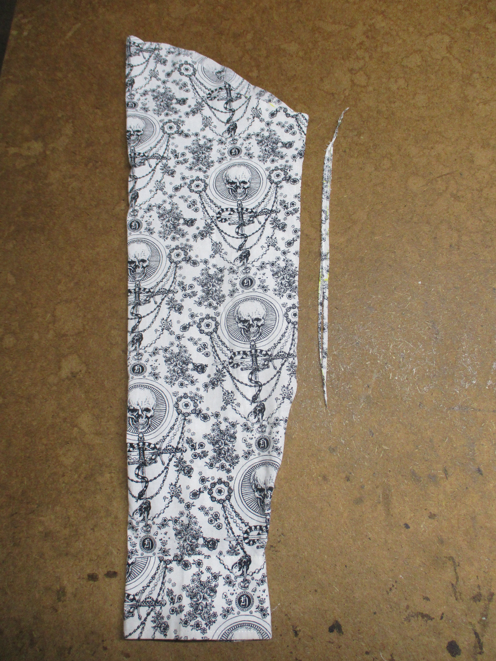 14枚目は見本の幅に合わせて脇から肘にかけて生地をカットしてきます。
