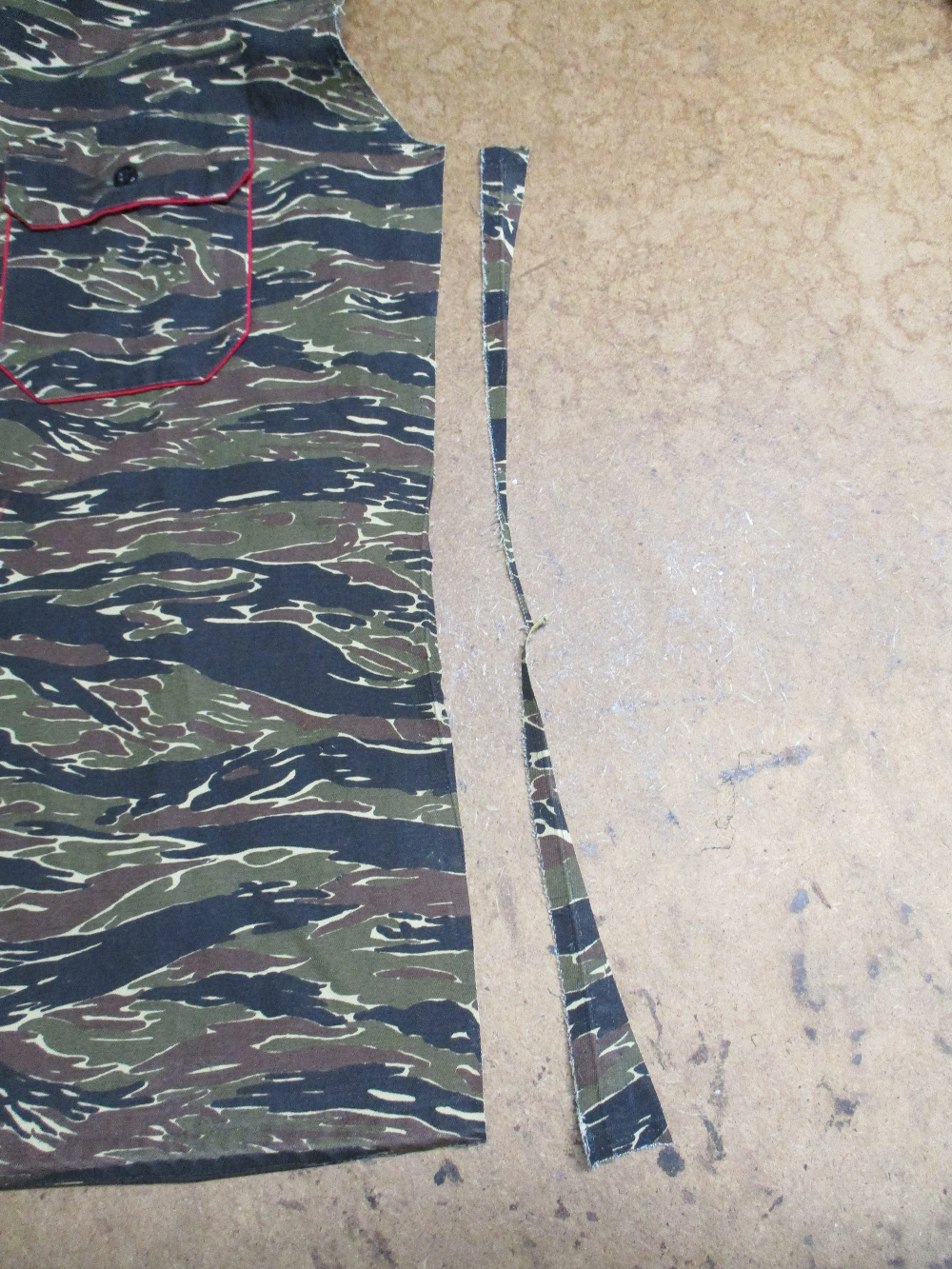 7枚目は後ろ身ごろの脇から裾のサイドの生地をカットした写真です。