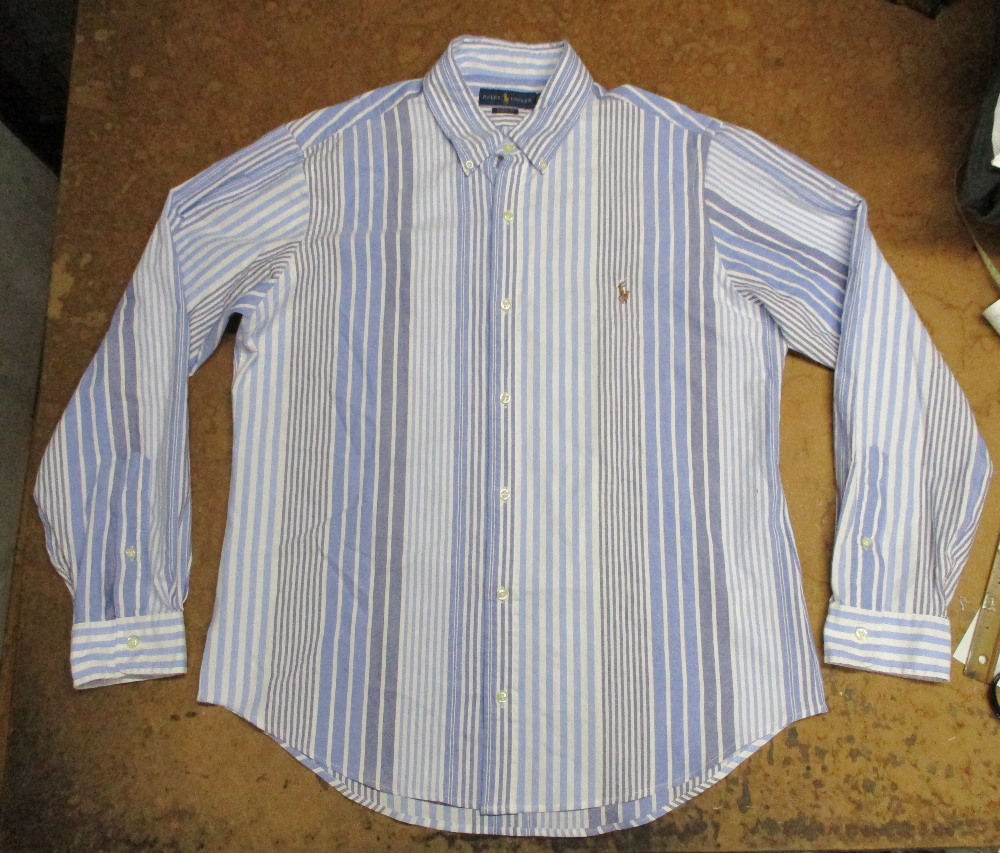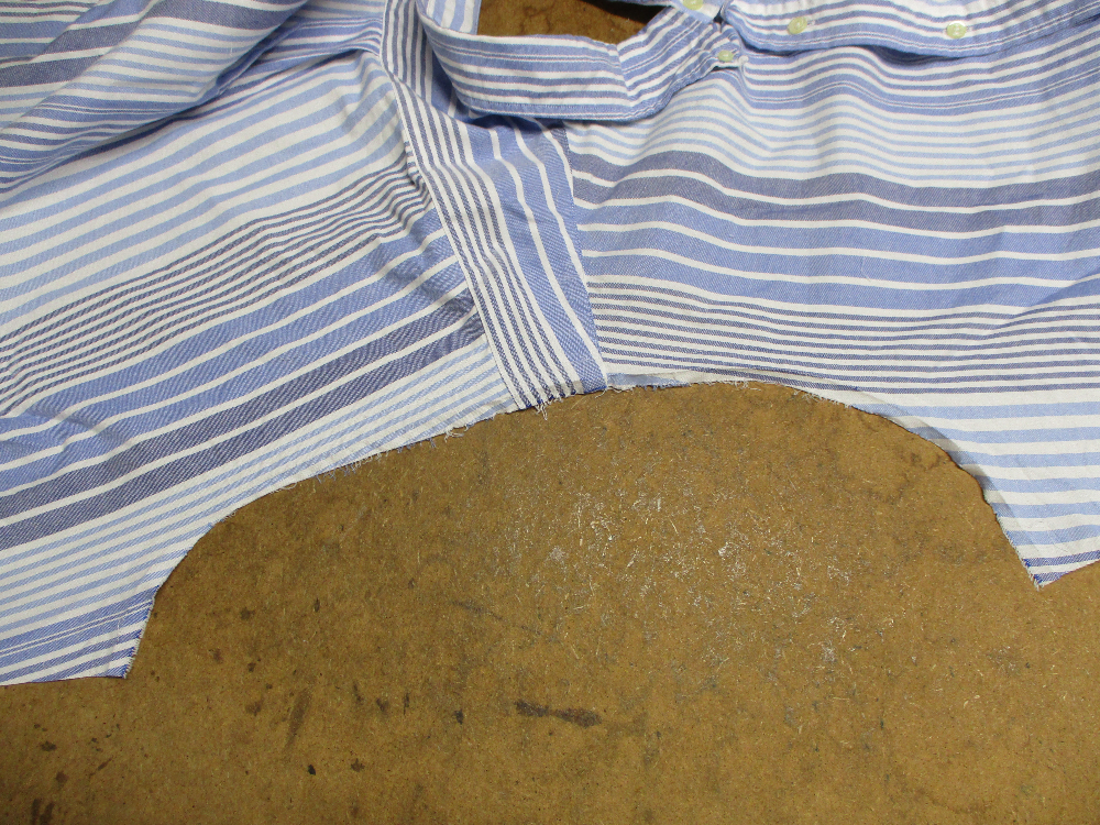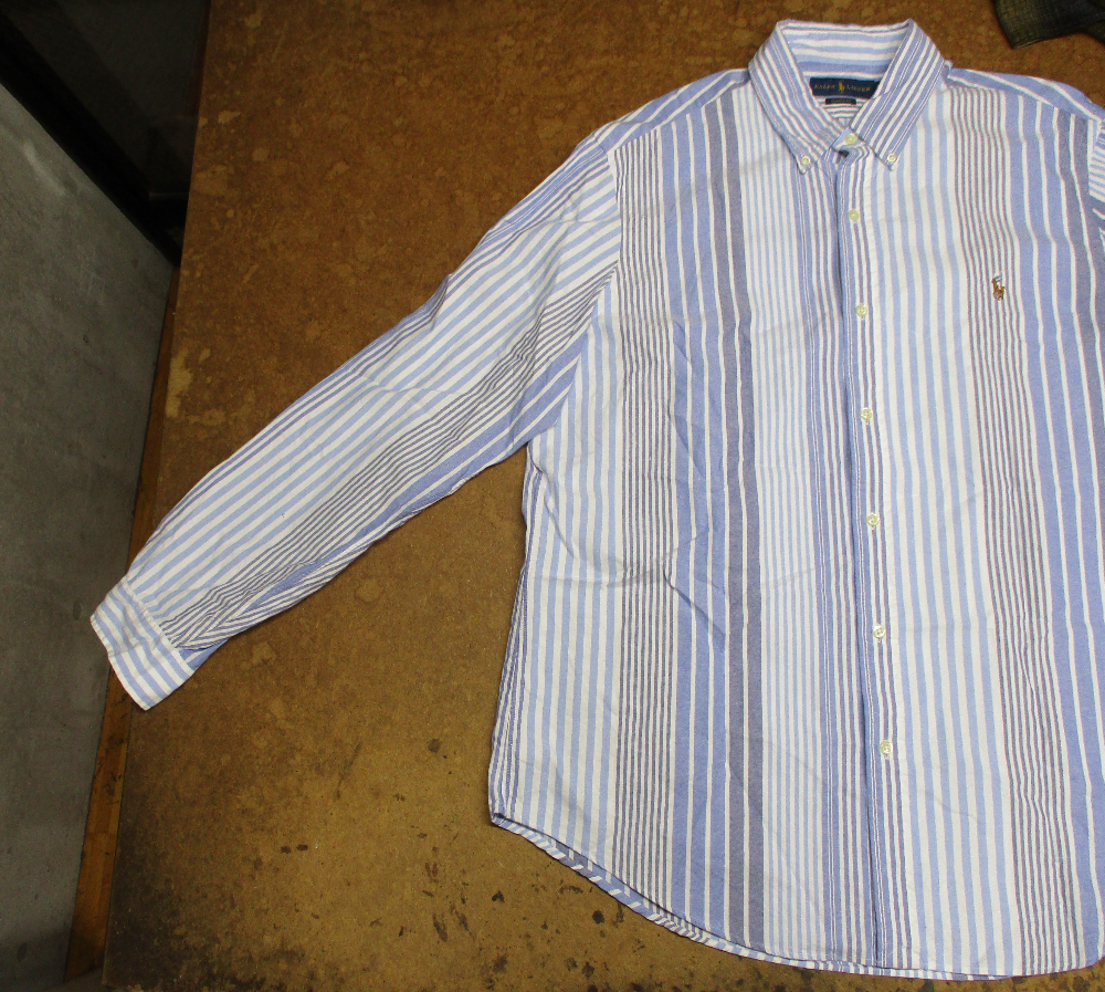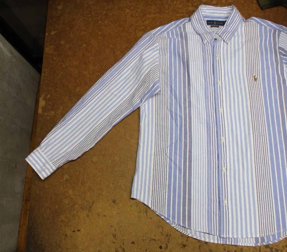 ラルフローレンの大きいサイズのシャツをお客さんの好みのサイズに小さくリサイズしていきます。